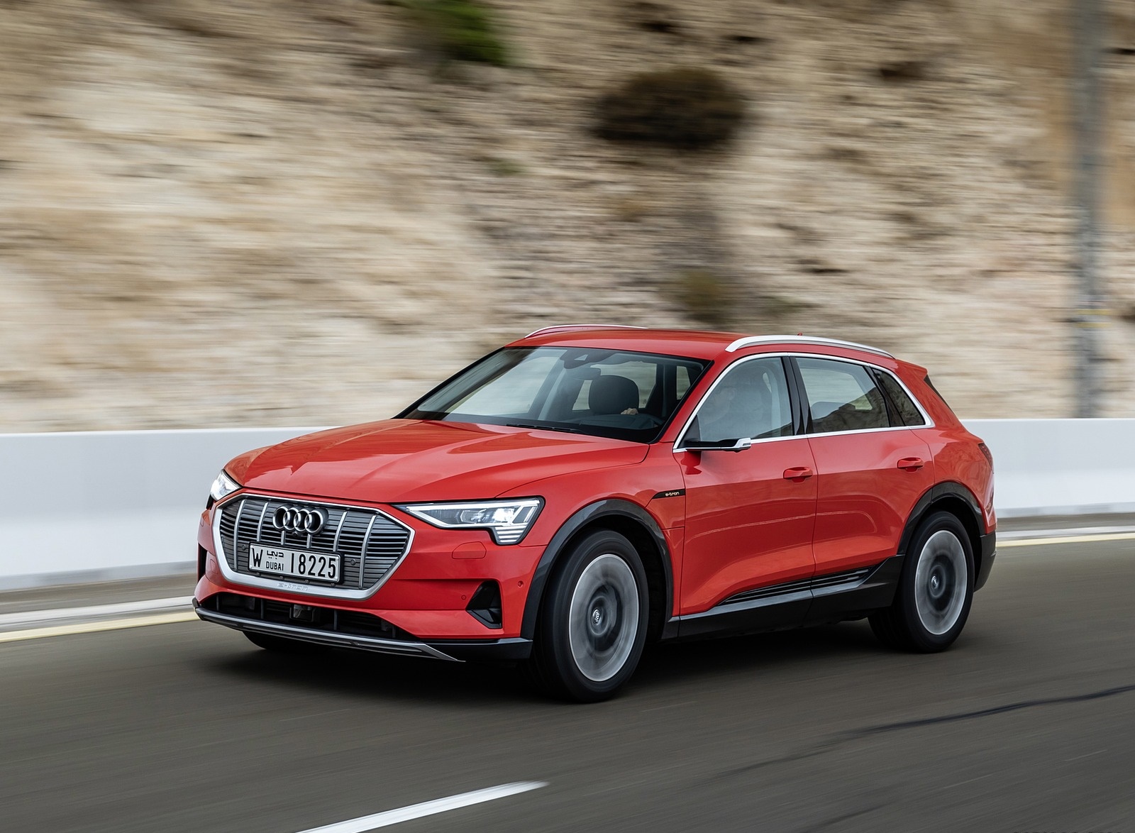 2019 Audi e-tron (Color: Catalunya Red) Front Three-Quarter Wallpaper