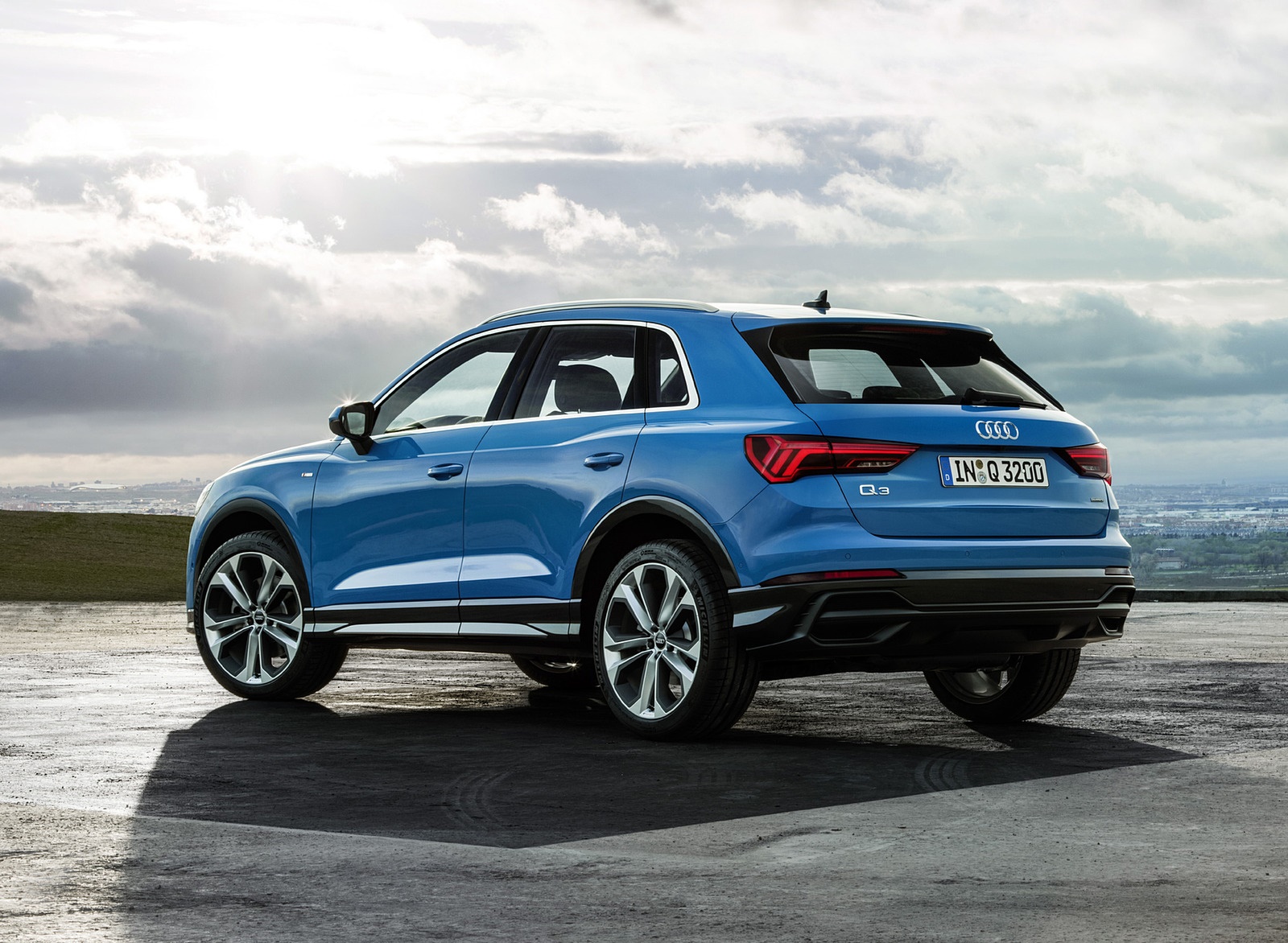 2019 Audi Q3 (Color: Turbo Blue) Rear Three-Quarter Wallpaper