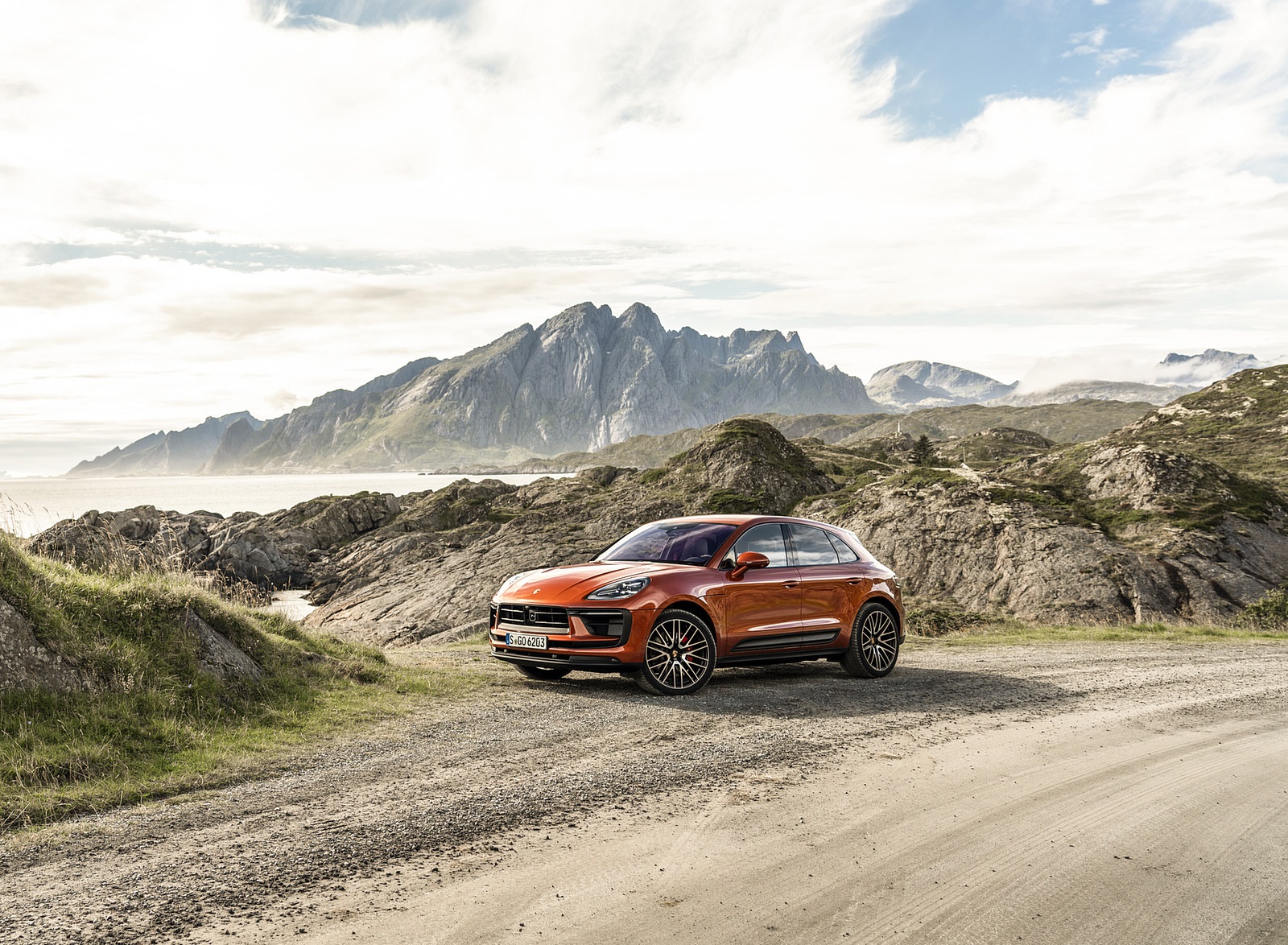 2022 Porsche Macan S (Color: Papaya Metallic) Front Three-Quarter Wallpaper