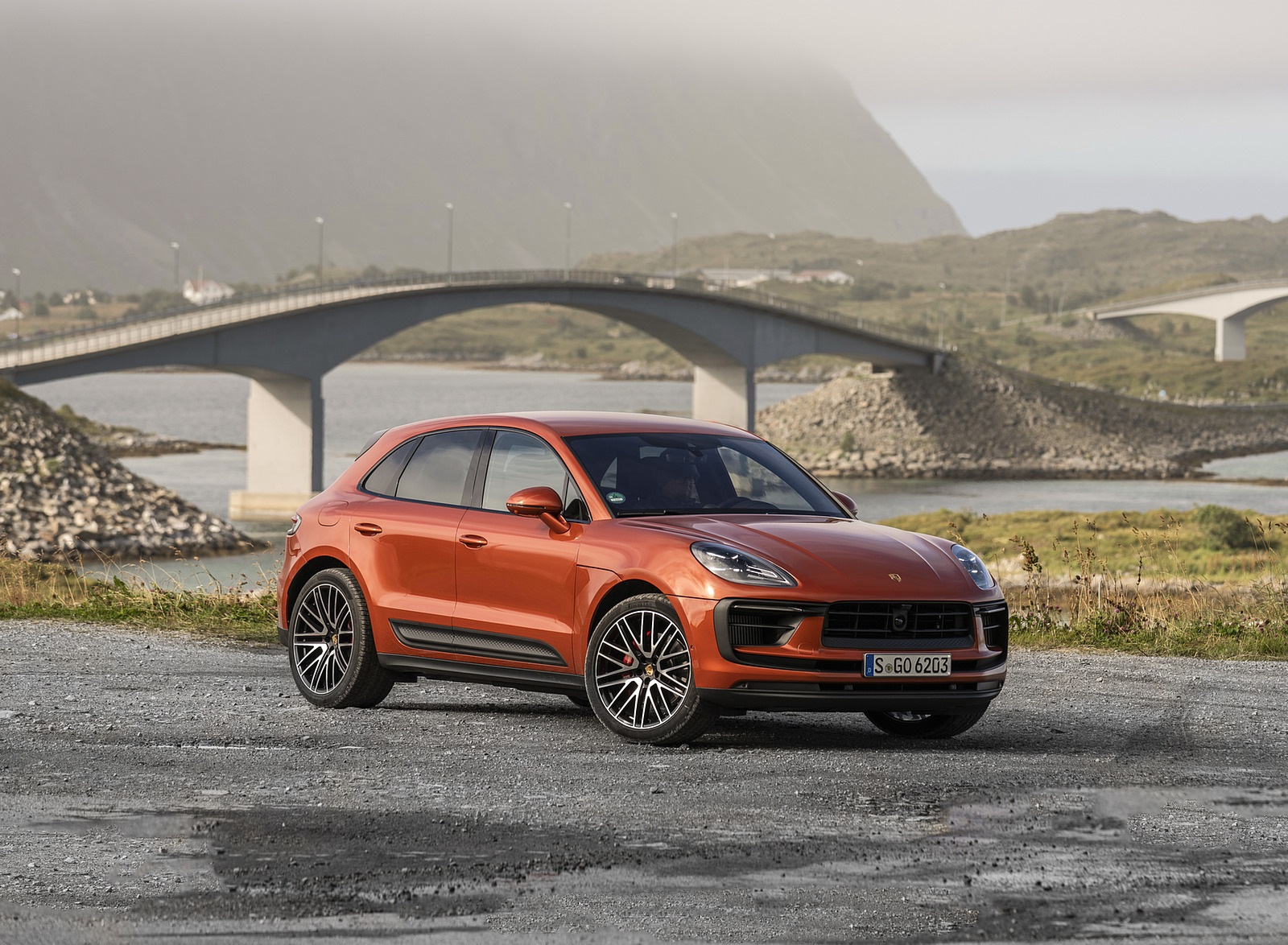 2022 Porsche Macan S (Color: Papaya Metallic) Front Three-Quarter Wallpaper