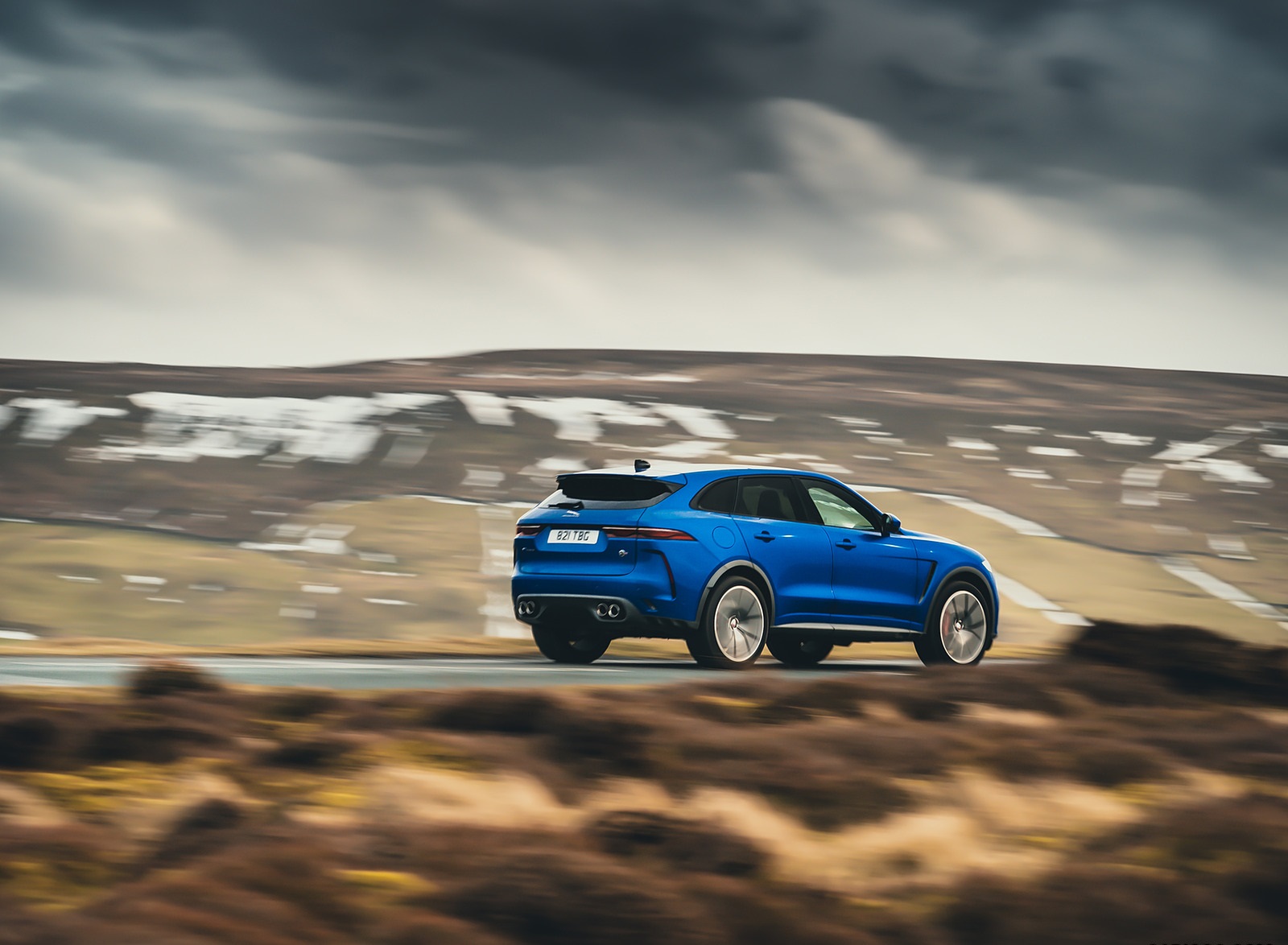 2021 Jaguar F-PACE SVR (Color: Velocity Blue) Rear Three-Quarter Wallpaper