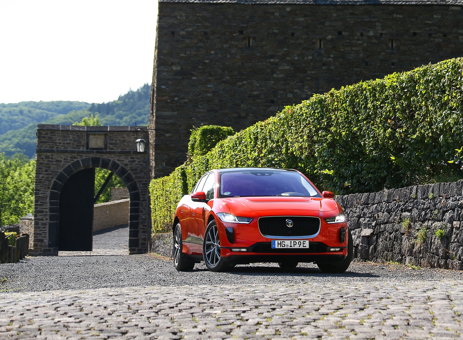 2019 Jaguar I-PACE EV400 AWD HSE First Edition (Color: Photon Red) Front HD Wallpaper