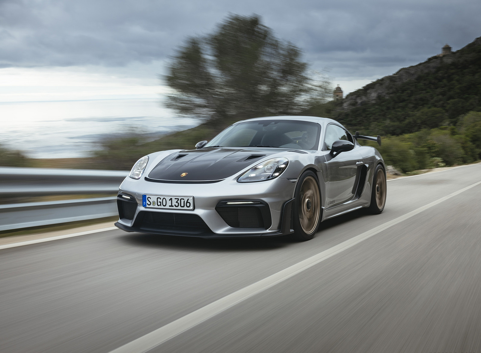 2022 Porsche 718 Cayman GT4 RS (Color: GT Silver Metallic) Front Three-Quarter HD Wallpaper
