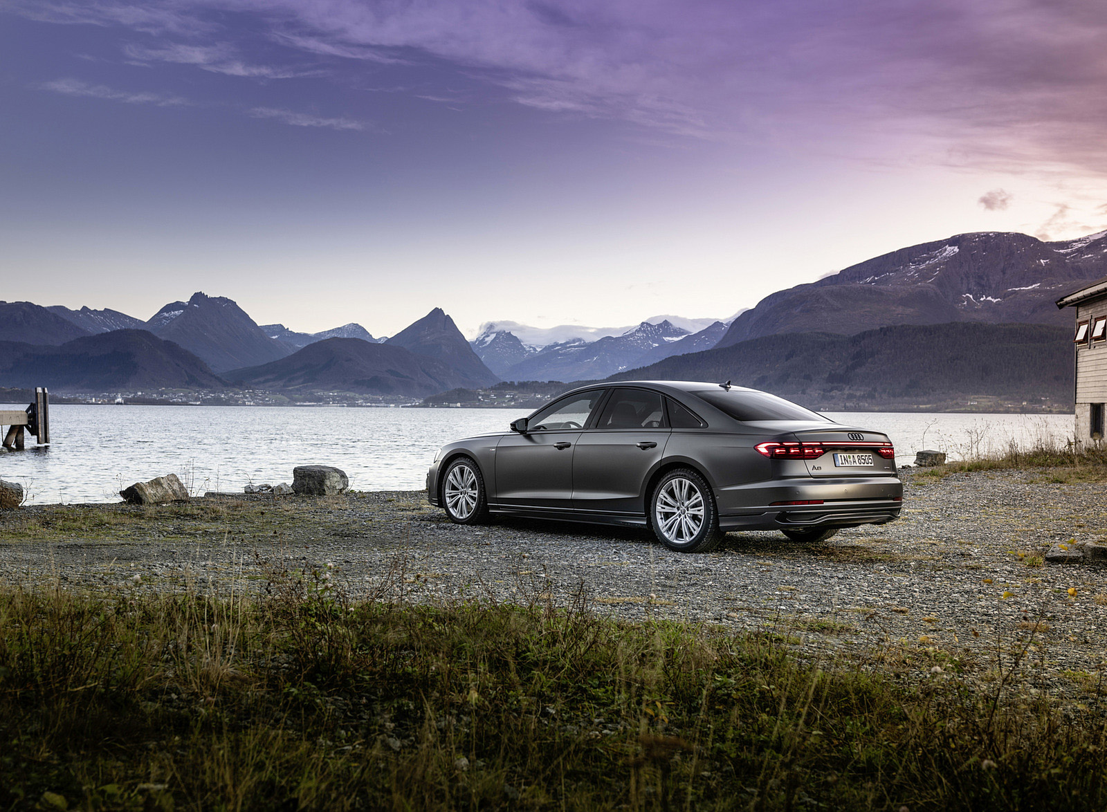 2022 Audi A8 (Color: Daytona Grey Matt Effect) Rear Three-Quarter HD Wallpaper
