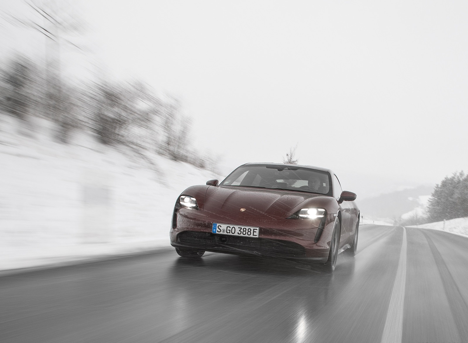 2021 Porsche Taycan (Color: Cherry Metallic) Front HD Wallpaper