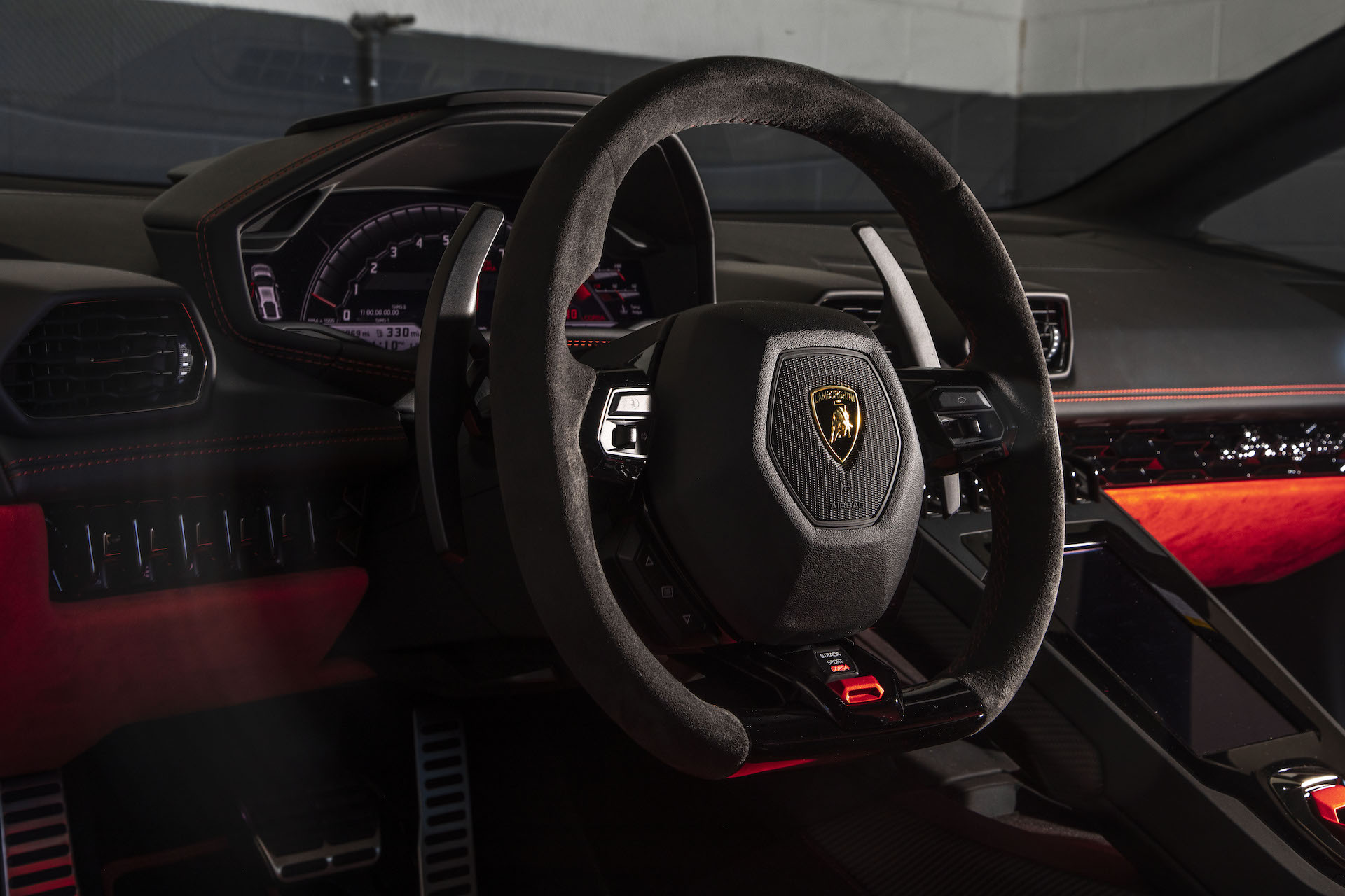2019 Lamborghini Huracán EVO (Color: Orange) Interior Steering Wheel Wallpaper