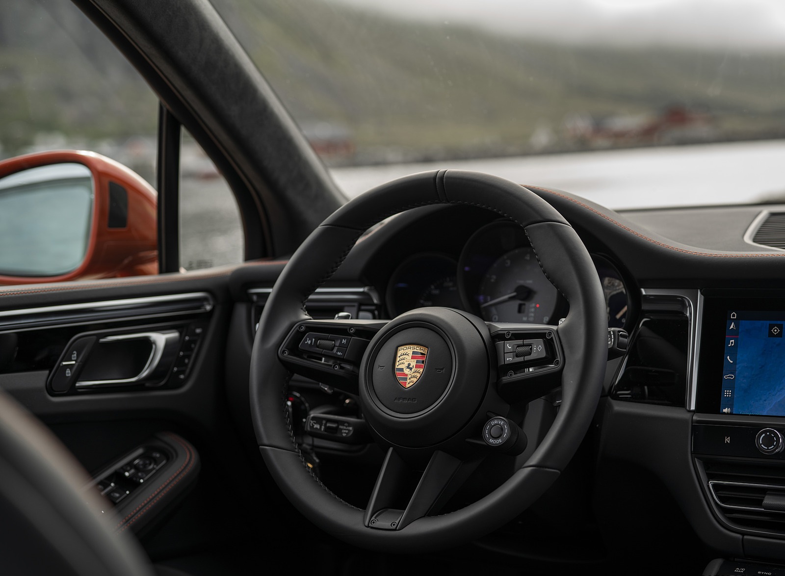 2022 Porsche Macan S (Color: Papaya Metallic) Interior Steering Wheel Wallpaper