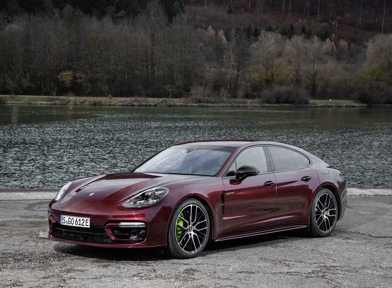 2021 Porsche Panamera 4 E-Hybrid (Color: Cherry Metallic) Front Three-Quarter Wallpaper