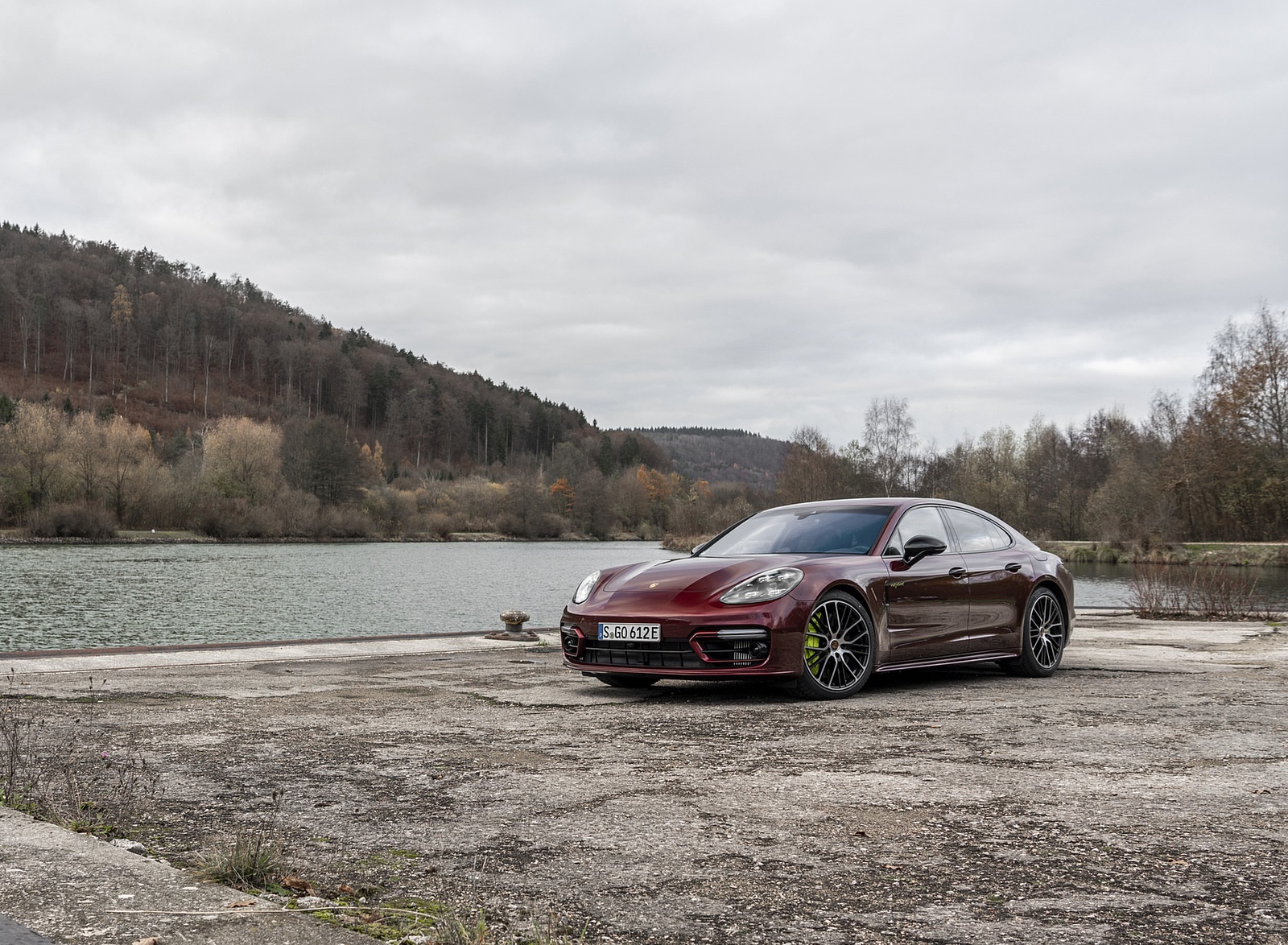 2021 Porsche Panamera 4 E-Hybrid (Color: Cherry Metallic) Front Three-Quarter Wallpaper