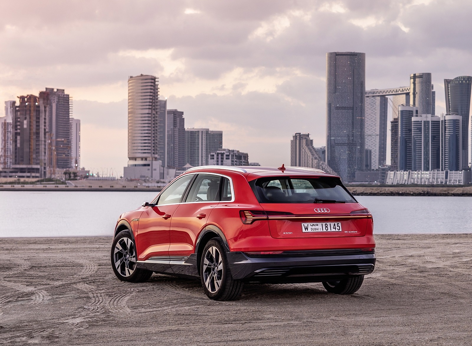2019 Audi e-tron (Color: Catalunya Red) Rear Three-Quarter HD Wallpaper