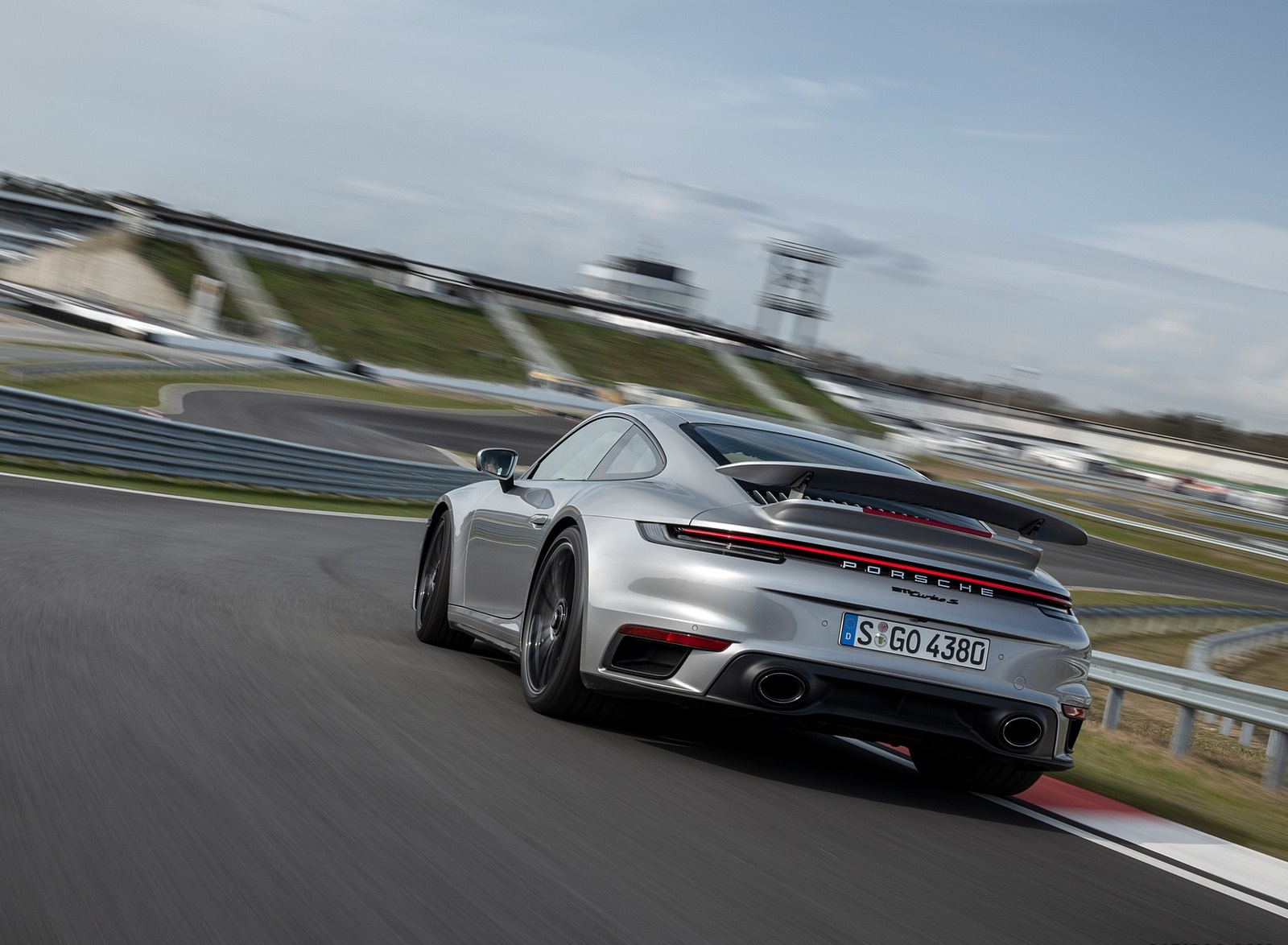 2021 Porsche 911 Turbo S Coupe (Color: GT Silver Metallic) Rear Three-Quarter HD Wallpaper