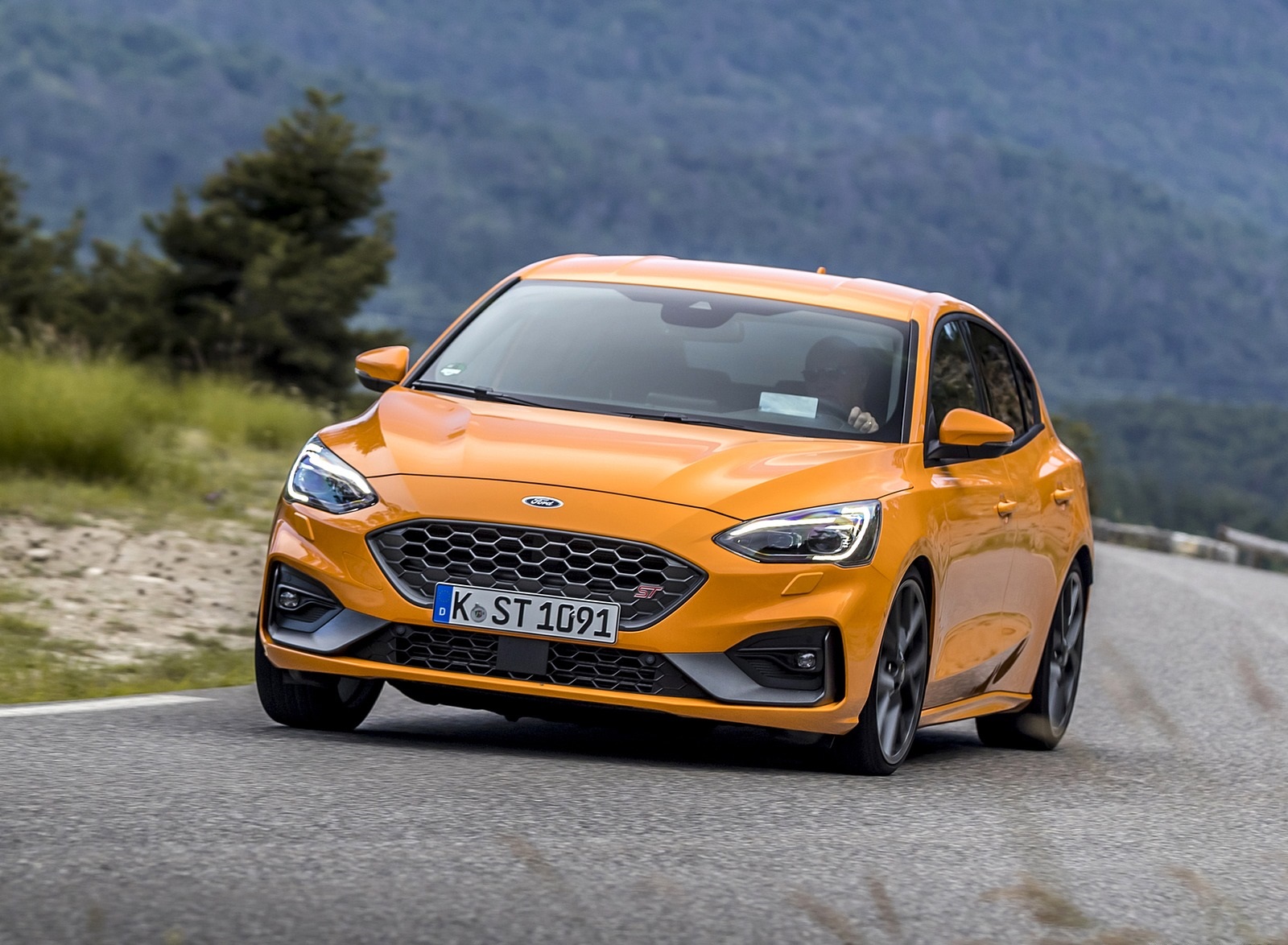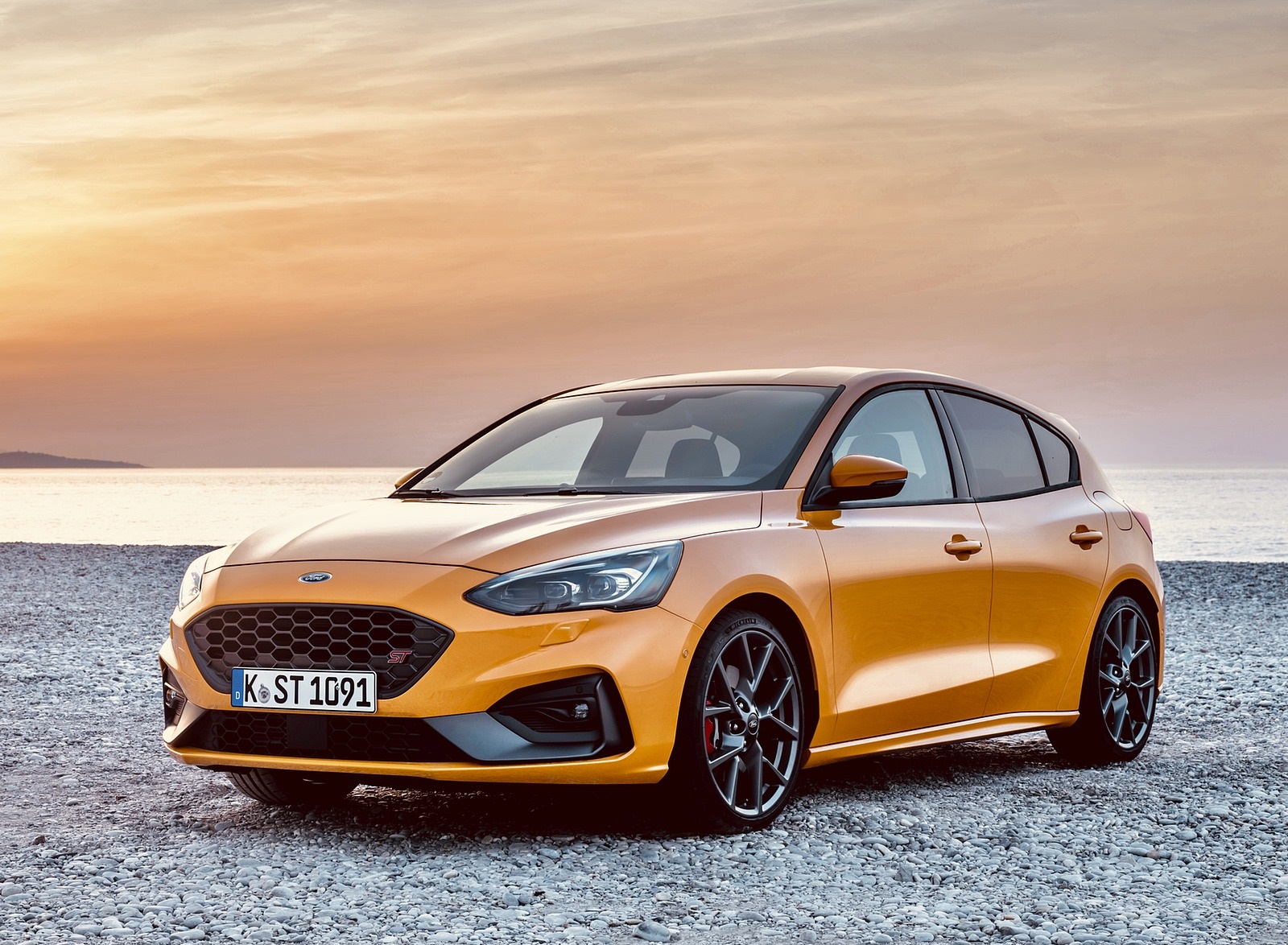2019 Ford Focus ST (Euro-Spec; Color: Orange Fury) Front Three-Quarter Wallpapers (1)