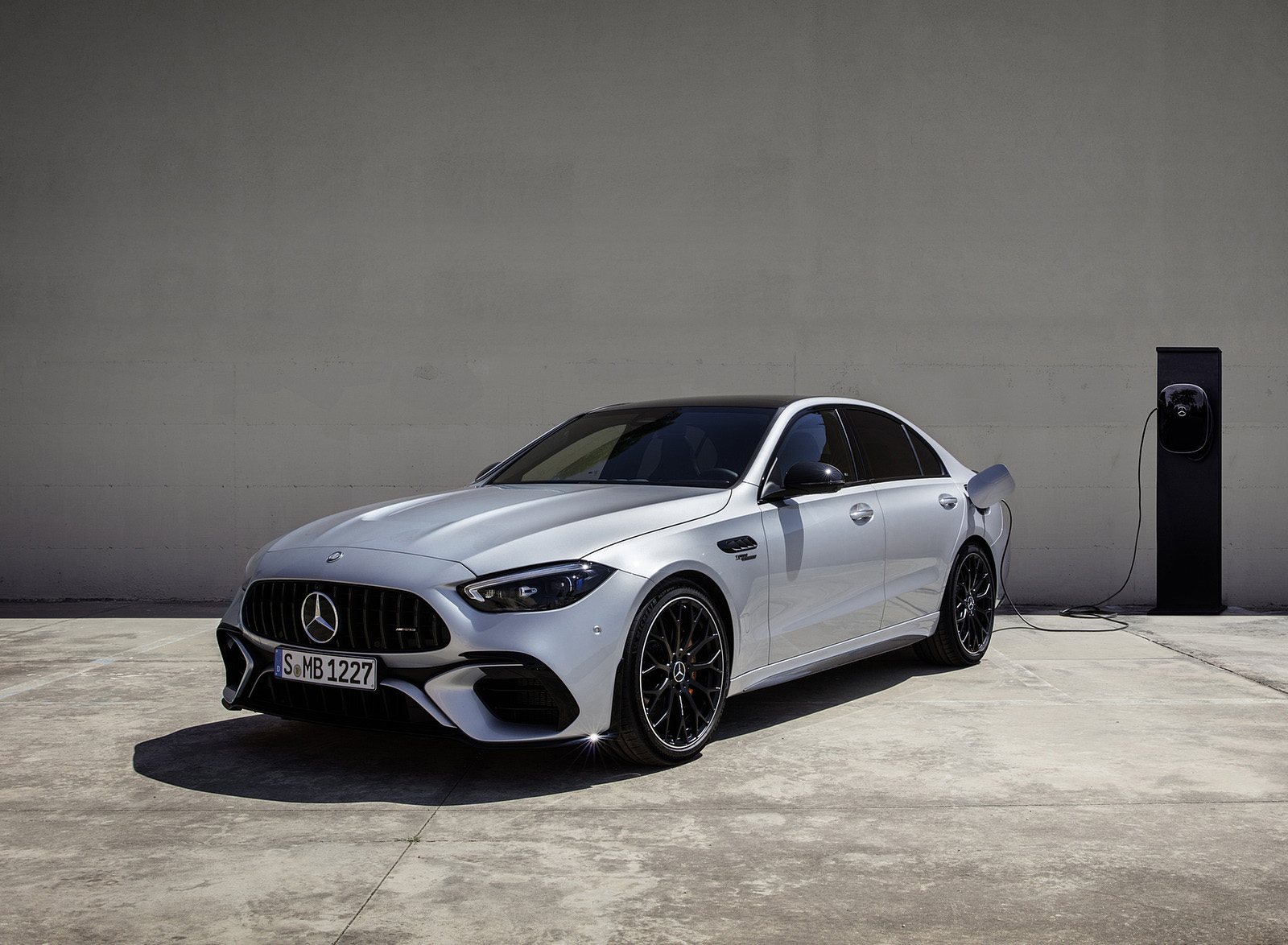 2024 Mercedes-AMG C 63 S E Performance Sedan (Color: High Tech Silver) Front Three-Quarter Wallpapers (1)