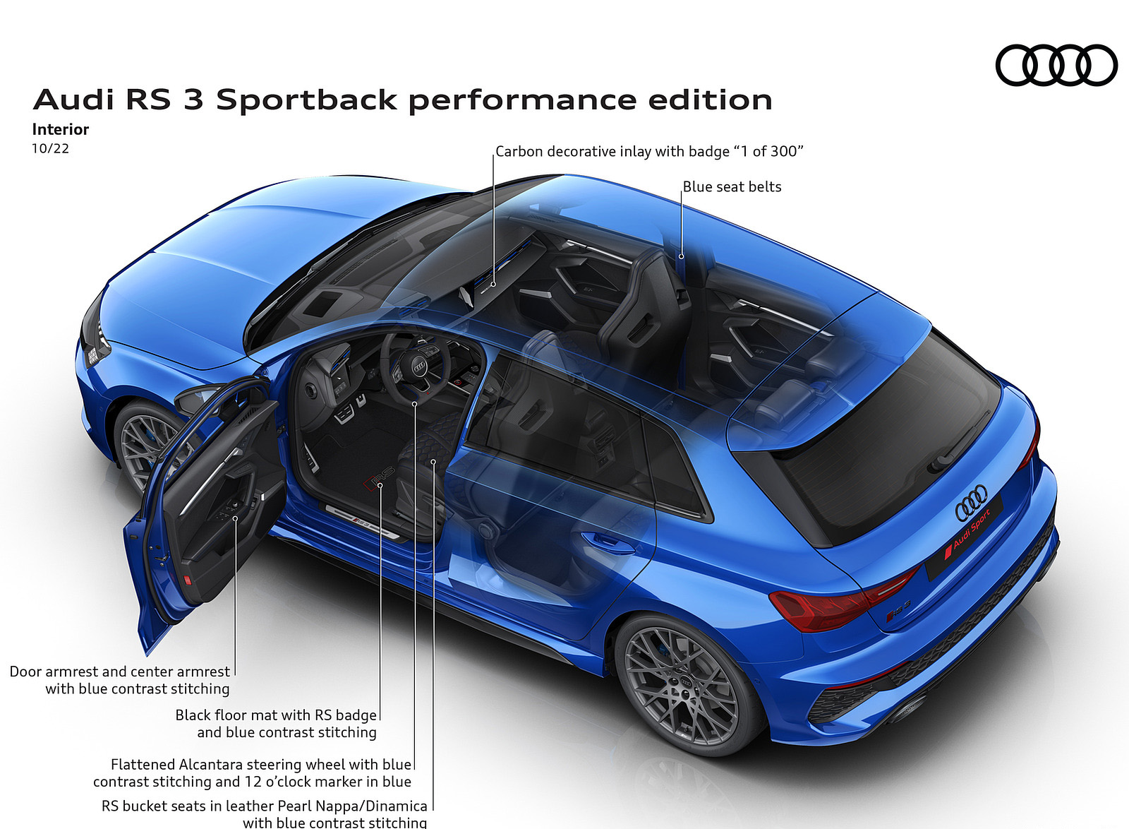 Faster: top speed set at 300 km/h (186 mph). Stronger: five-cylinder turbo engine with 299 kW (407 PS) of power. Sportier: bucket seats, ceramic brakes, and adaptive chassis as standard. Special: limited edition...
