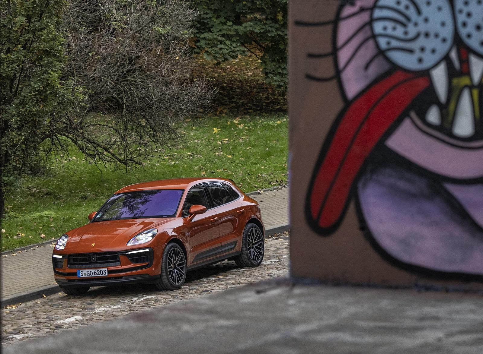 2022 Porsche Macan S (Color: Papaya Metallic) Front Three-Quarter Wallpaper