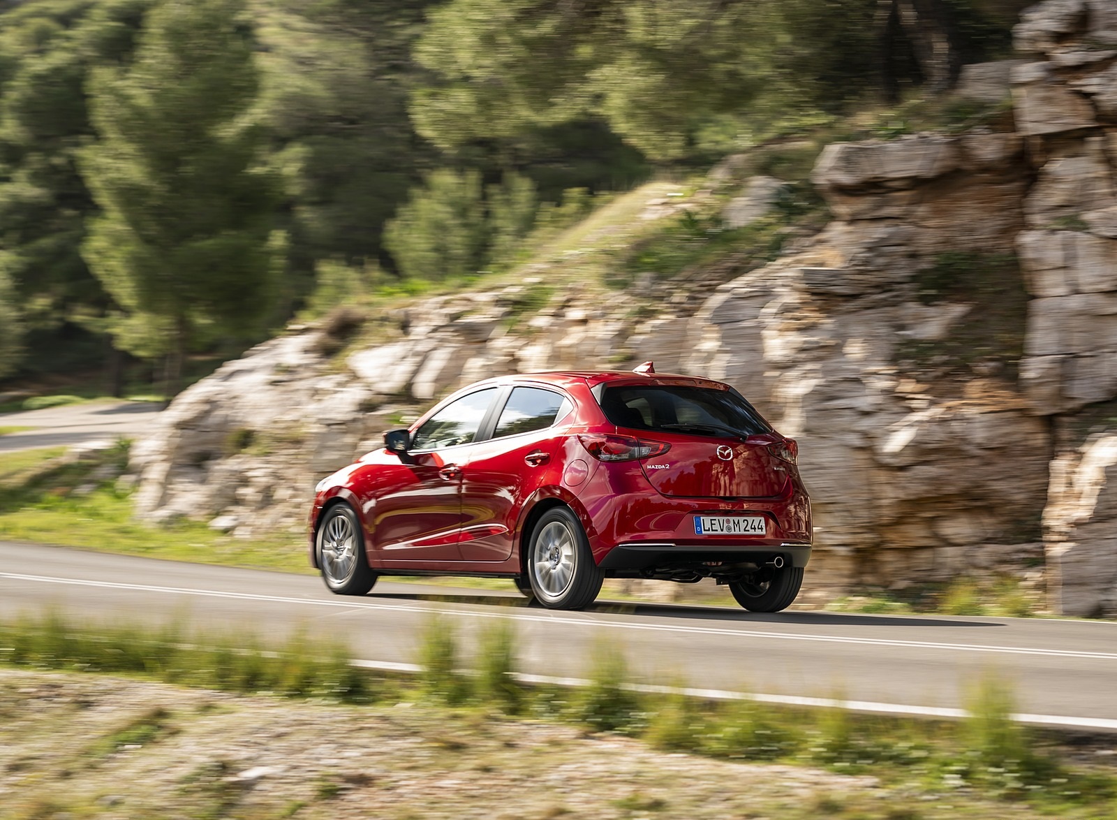 2020 Mazda2 (Color: Red Crystal) Rear Three-Quarter Wallpaper