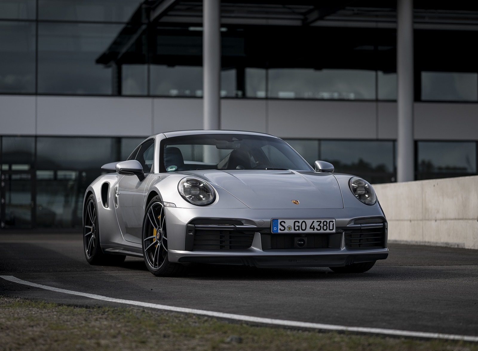 2021 Porsche 911 Turbo S Coupe (Color: GT Silver Metallic) Front Three-Quarter Wallpaper