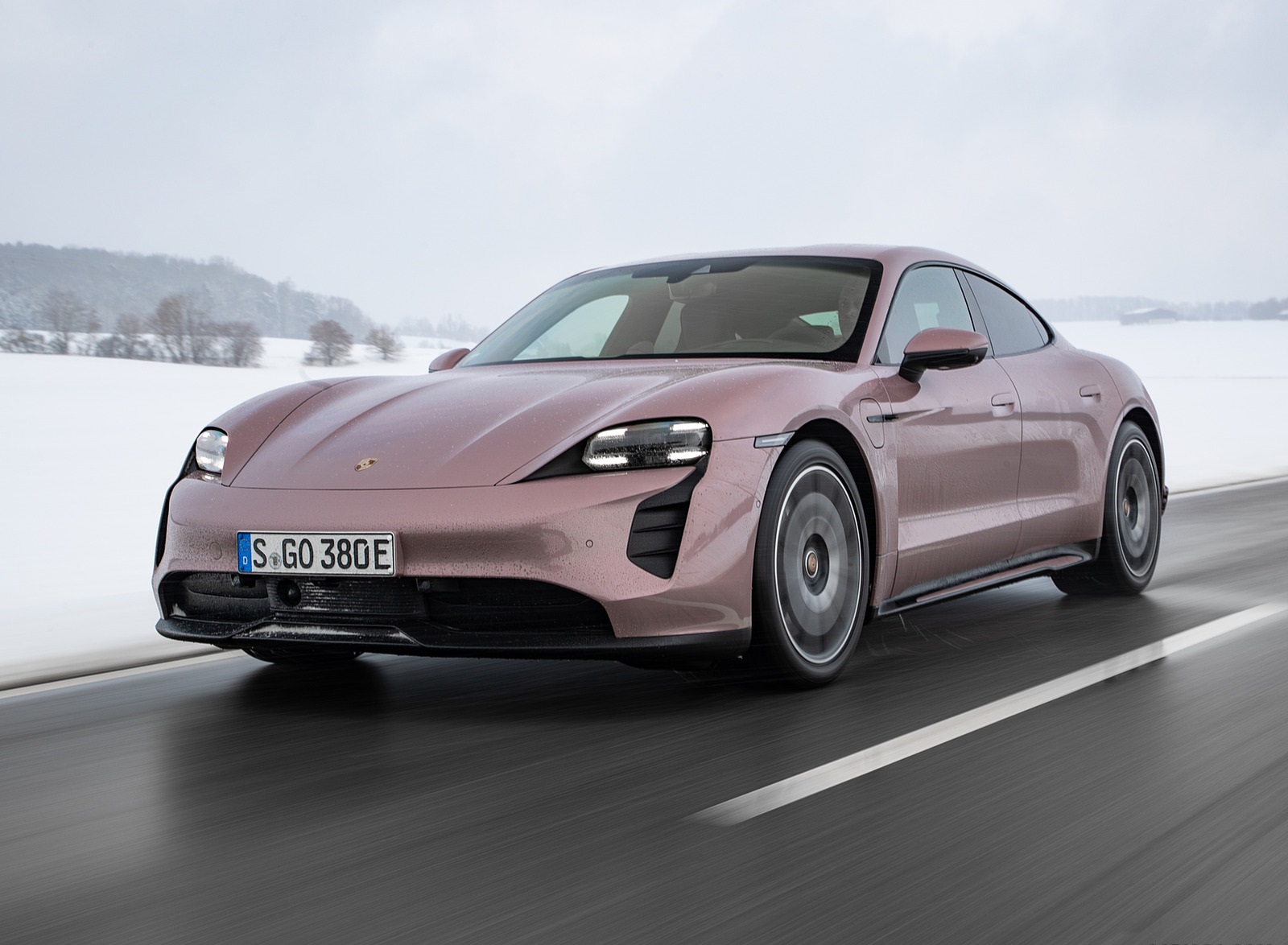 2021 Porsche Taycan (Color: Frozen Berry Metallic) Front Three-Quarter Wallpaper