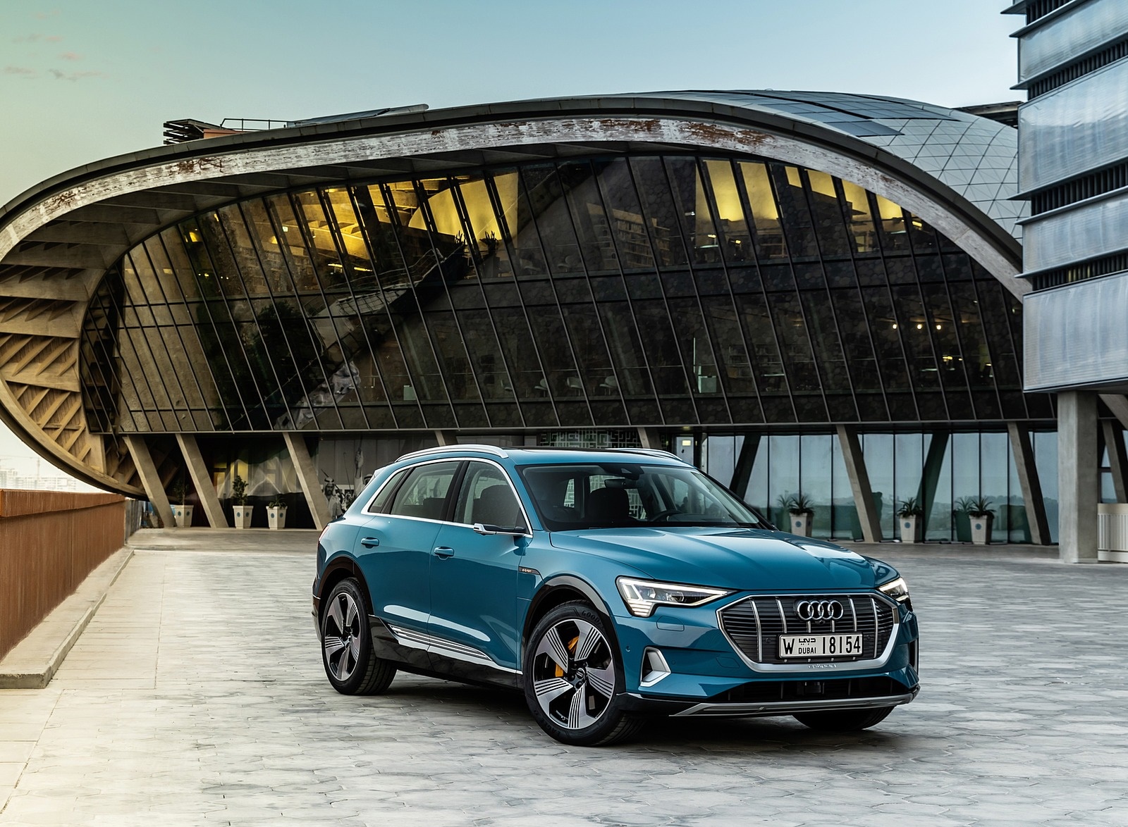 2019 Audi e-tron (Color: Antigua Blue) Front Three-Quarter Wallpaper