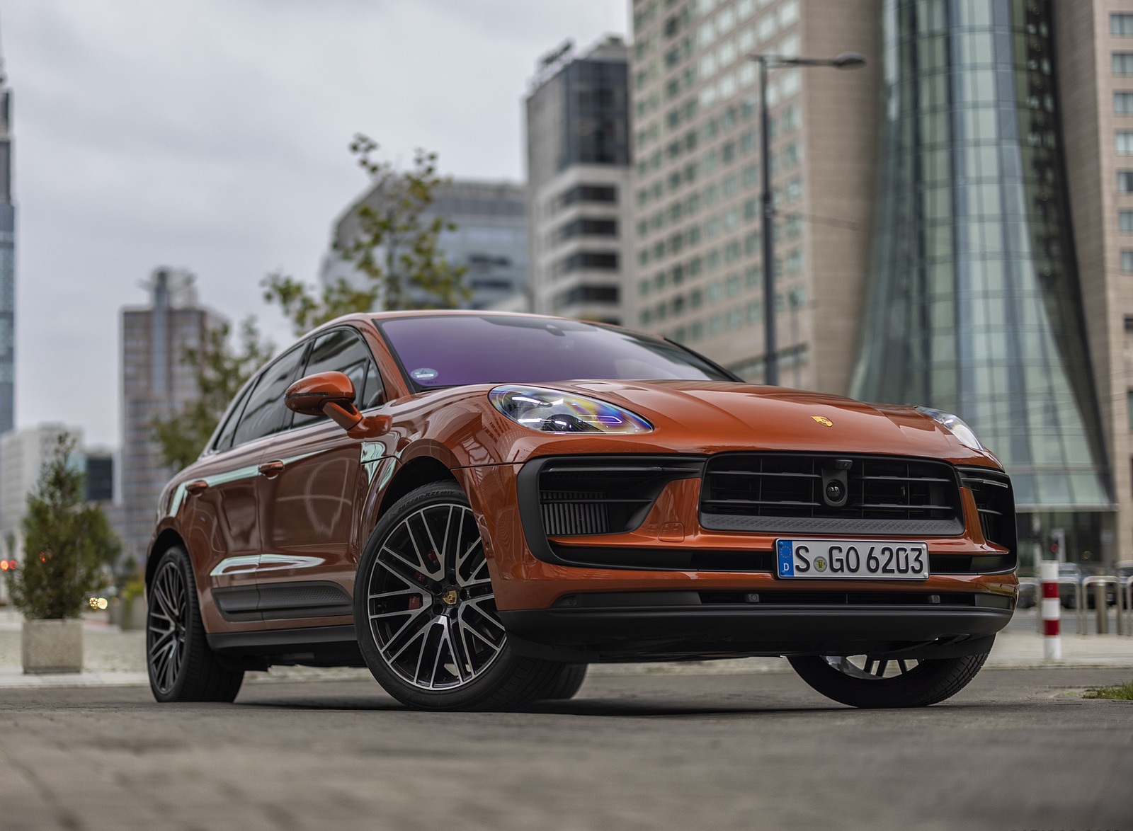 2022 Porsche Macan S (Color: Papaya Metallic) Front Three-Quarter Wallpaper