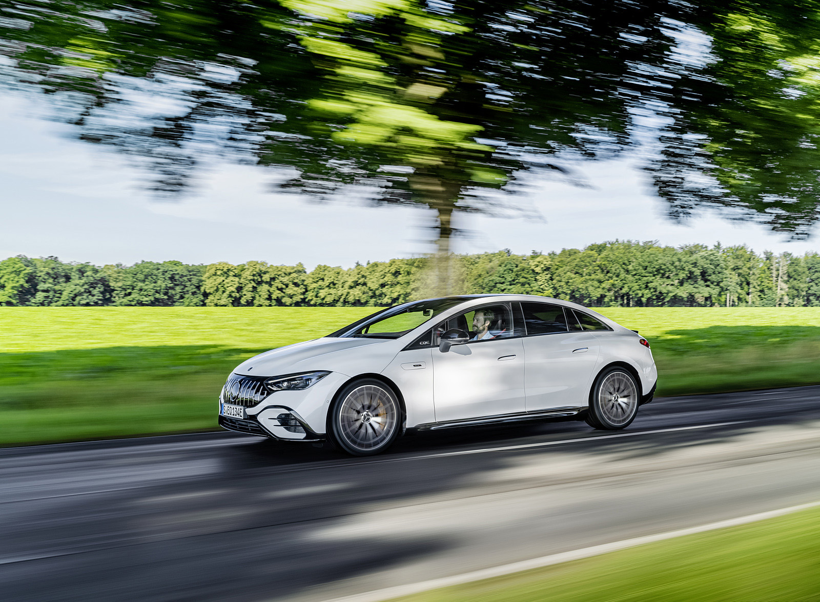 2023 Mercedes-AMG EQE 53 4MATIC+ (Color: Opalite White Bright) Front Three-Quarter HD Wallpaper