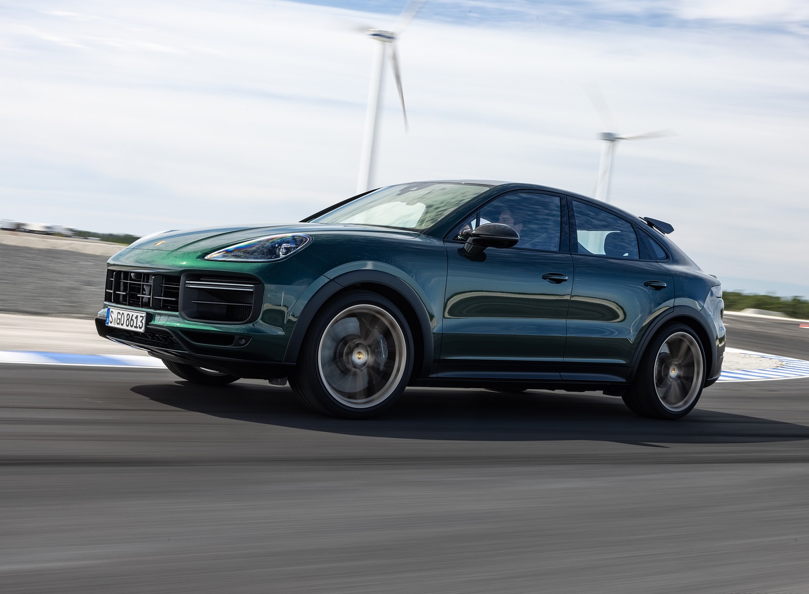 2022 Porsche Cayenne Turbo GT (Color: Porsche Racing Green Metallic) Front Three-Quarter Wallpaper