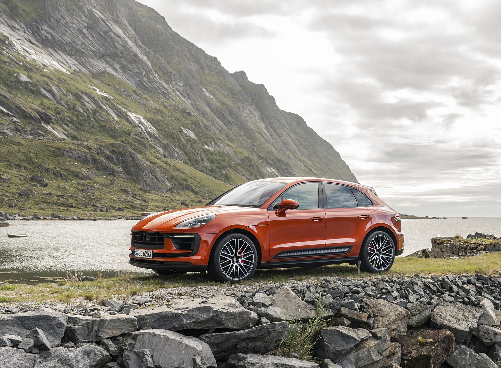2022 Porsche Macan S (Color: Papaya Metallic) Front Three-Quarter Wallpaper