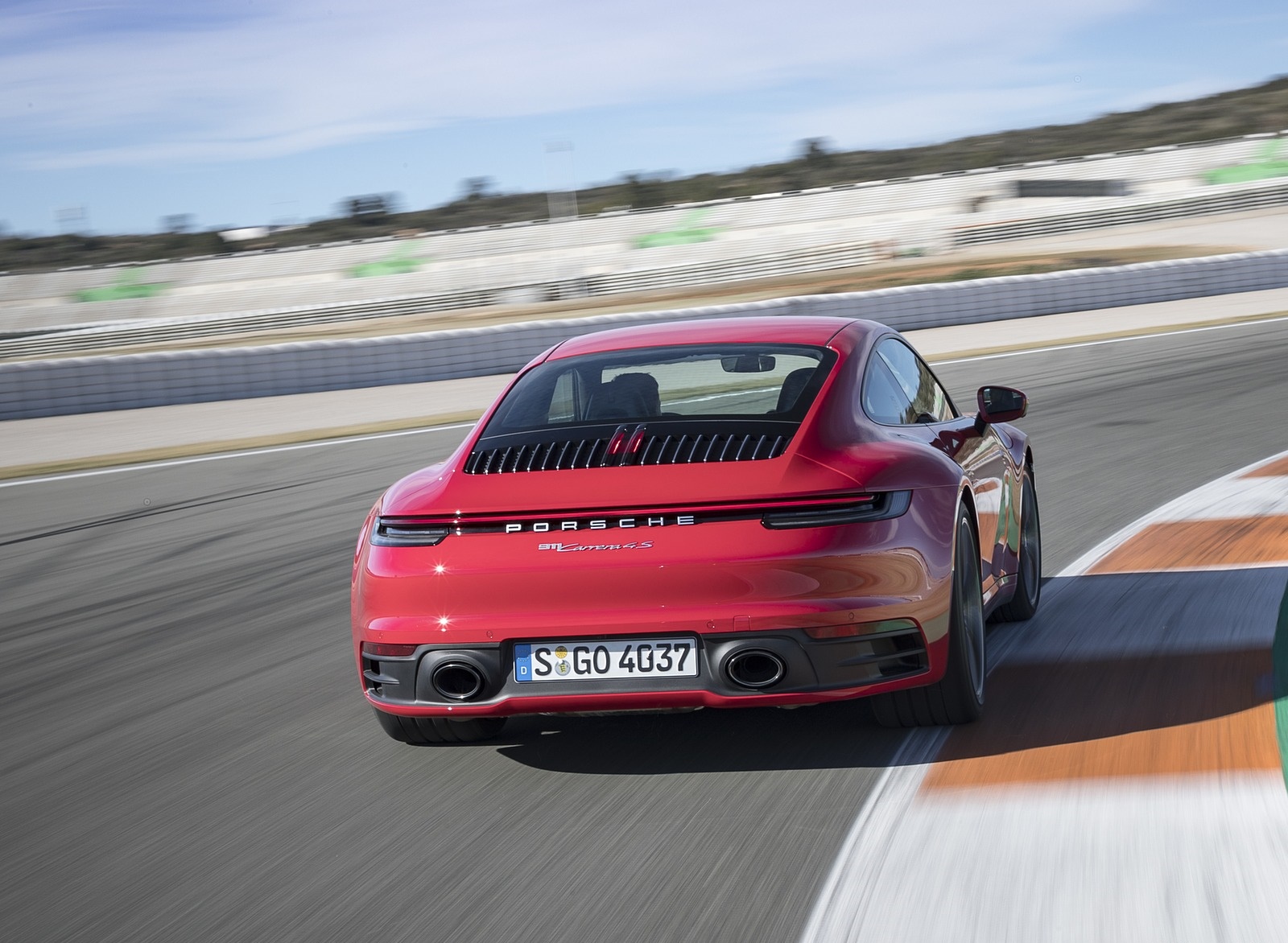 2020 Porsche 911 4S (Color: Guards Red) Rear Three-Quarter HD Wallpaper