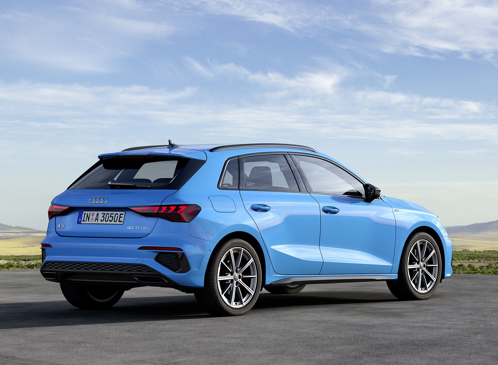 2021 Audi A3 Sportback TFSI e Plug-In Hybrid (Color: Turbo Blue) Rear Three-Quarter HD Wallpaper