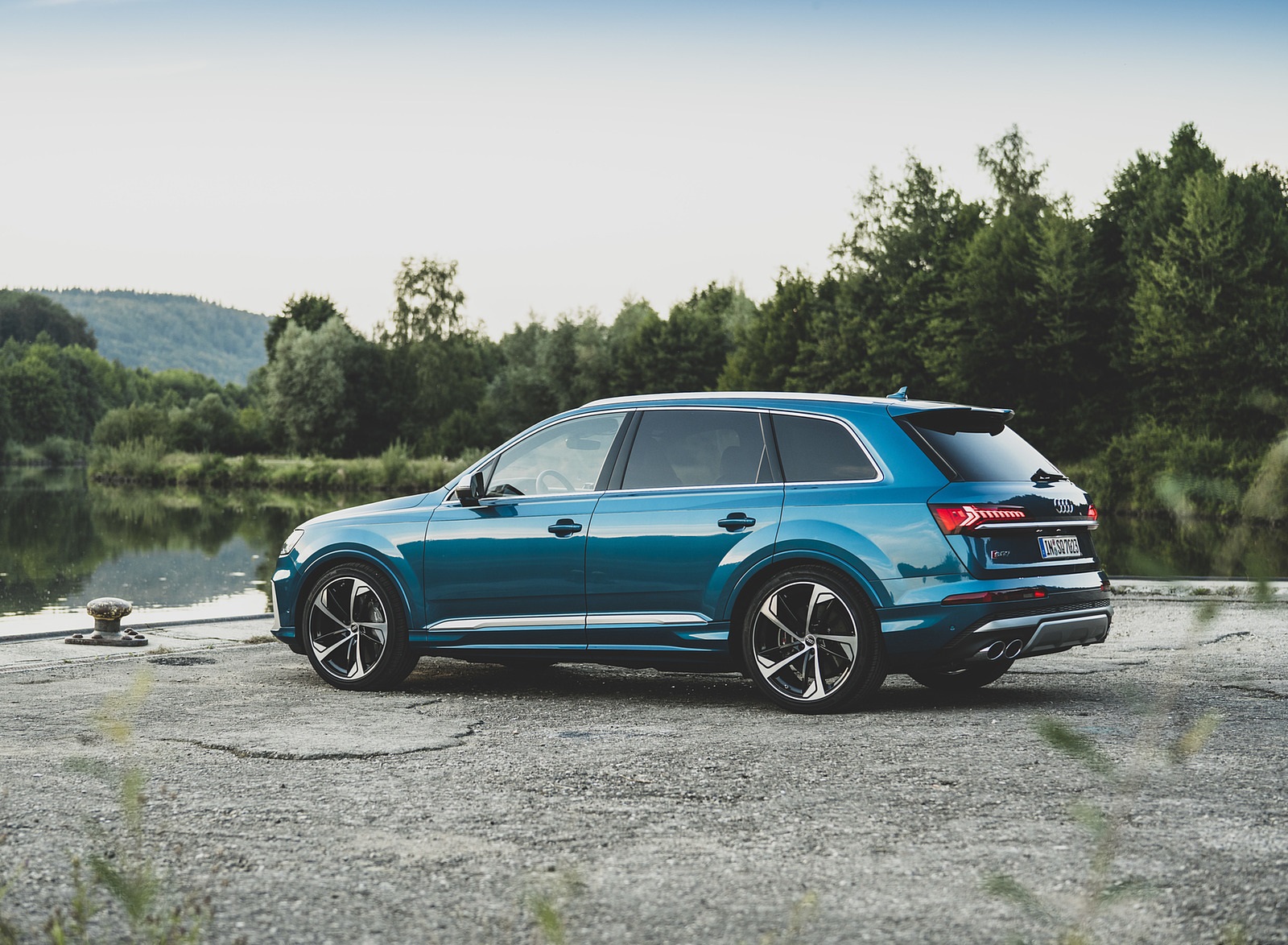 2021 Audi SQ7 (Color: Atoll Blue) Rear Three-Quarter Wallpaper
