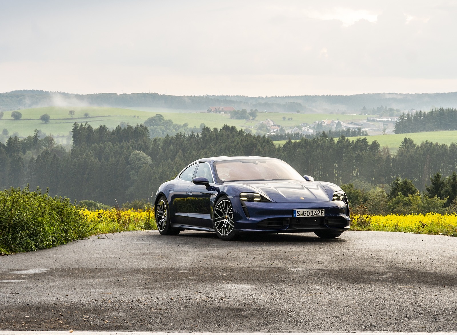 2020 Porsche Taycan Turbo S (Color: Night Blue Metallic) Front Three-Quarter Wallpaper