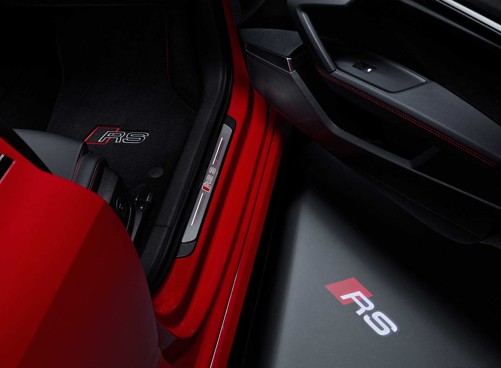 2022 Audi RS 3 Sportback (Color: Tango Red) Ground Projection HD Wallpaper