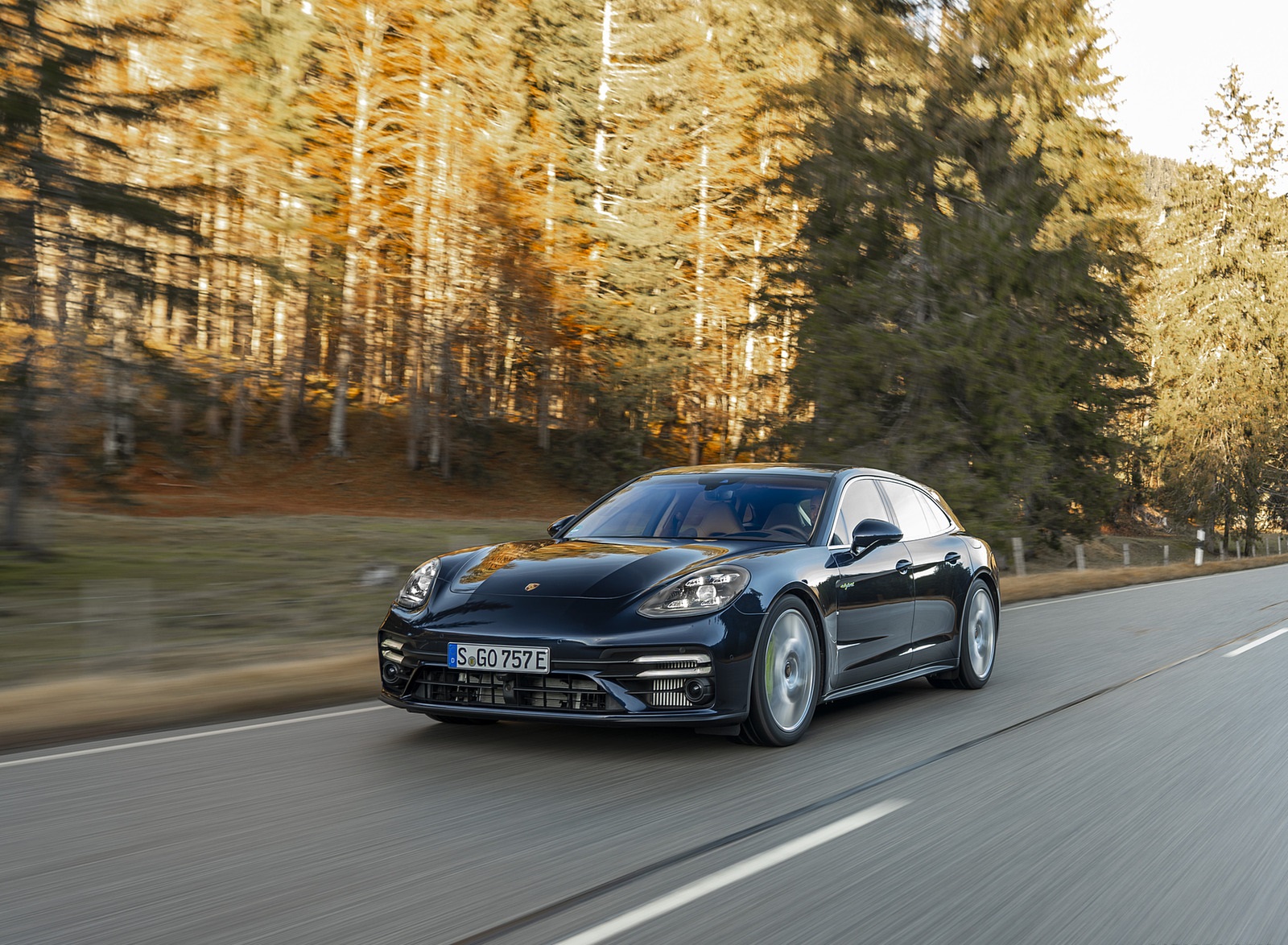 2021 Porsche Panamera Turbo S E-Hybrid Sport Turismo (Color: Night Blue Metallic) Front Three-Quarter Wallpaper