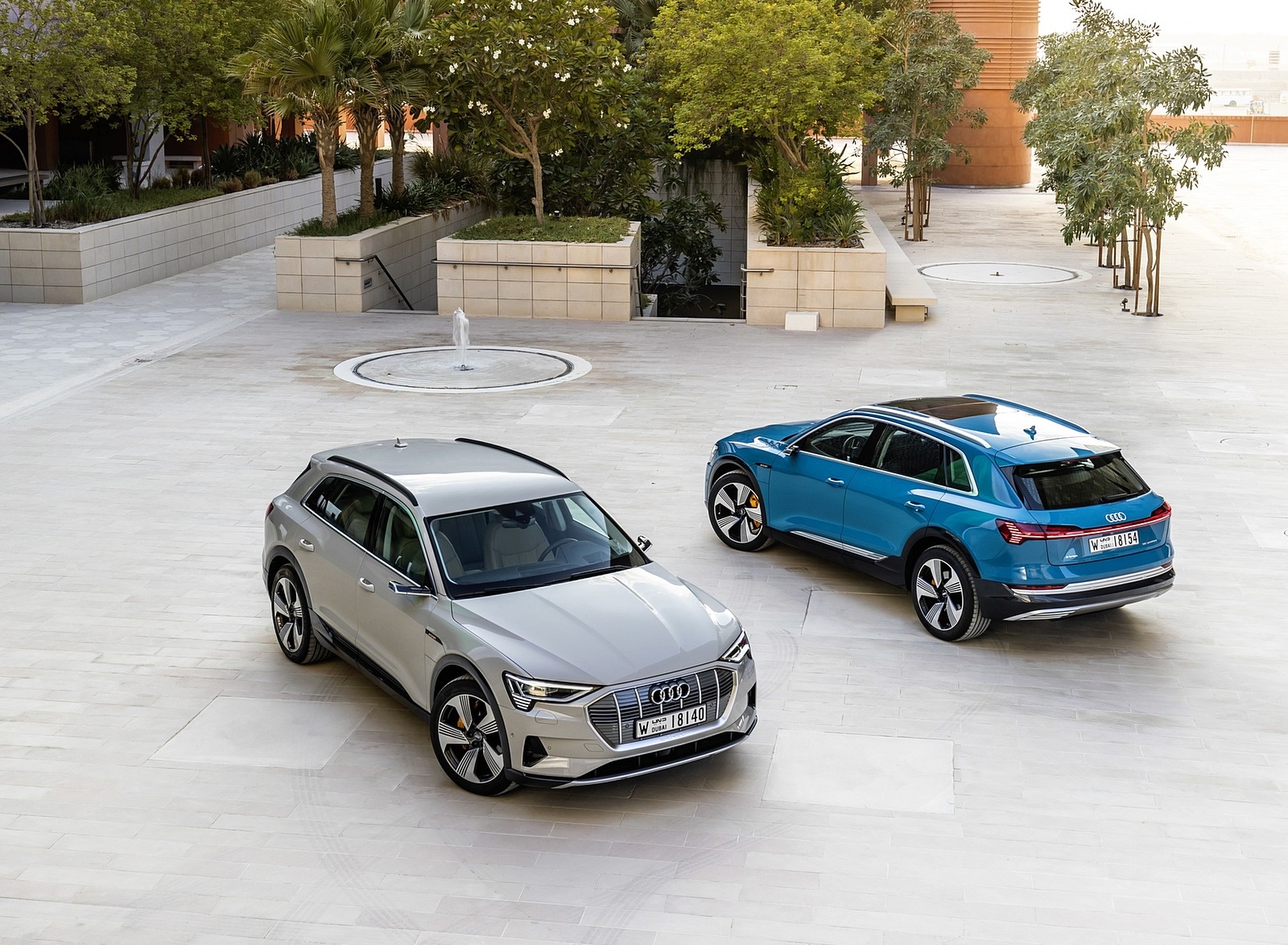 2019 Audi e-tron (Color: Siam Beige) and Audi e-tron (Color: Antigua Blue) Front HD Wallpaper