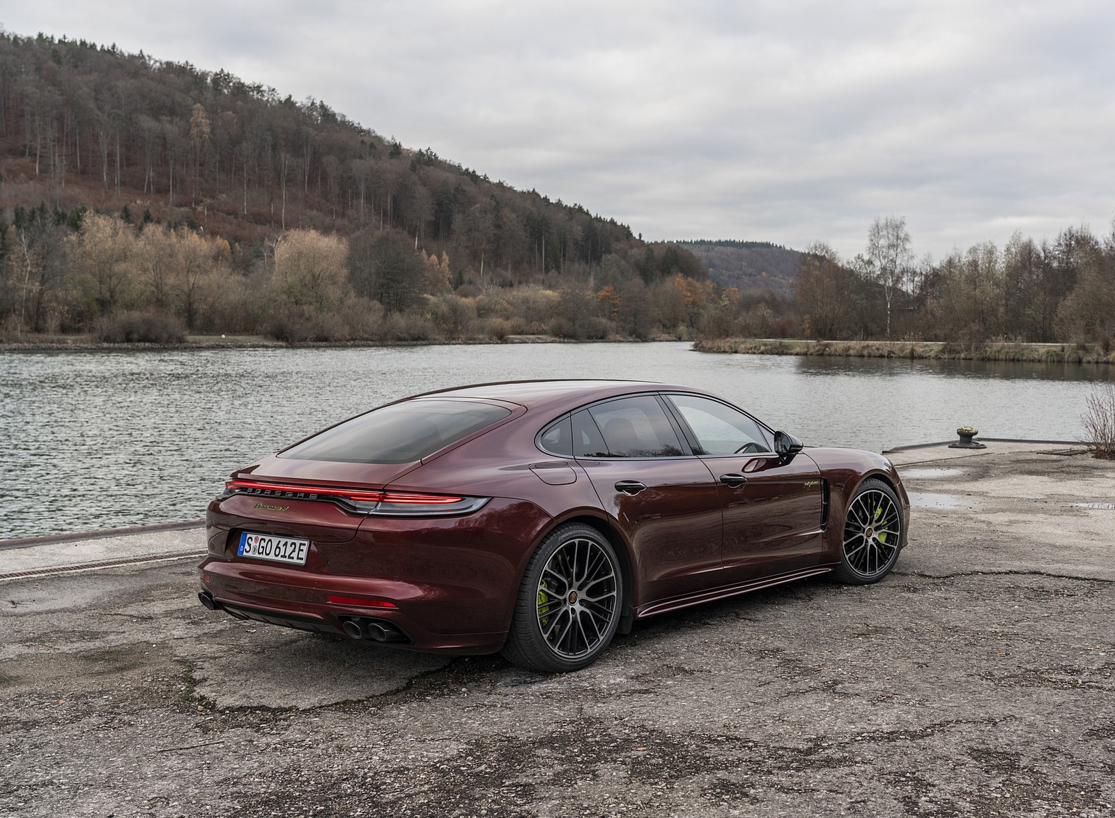 2021 Porsche Panamera 4 E-Hybrid (Color: Cherry Metallic) Rear Three-Quarter HD Wallpaper