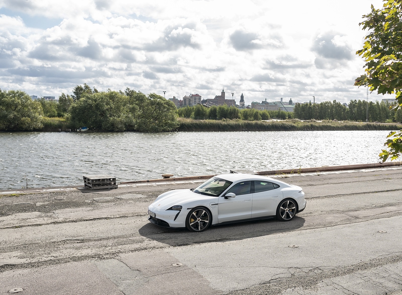 2020 Porsche Taycan Turbo S (Color: Carrara White Metallic) Front Three-Quarter Wallpaper