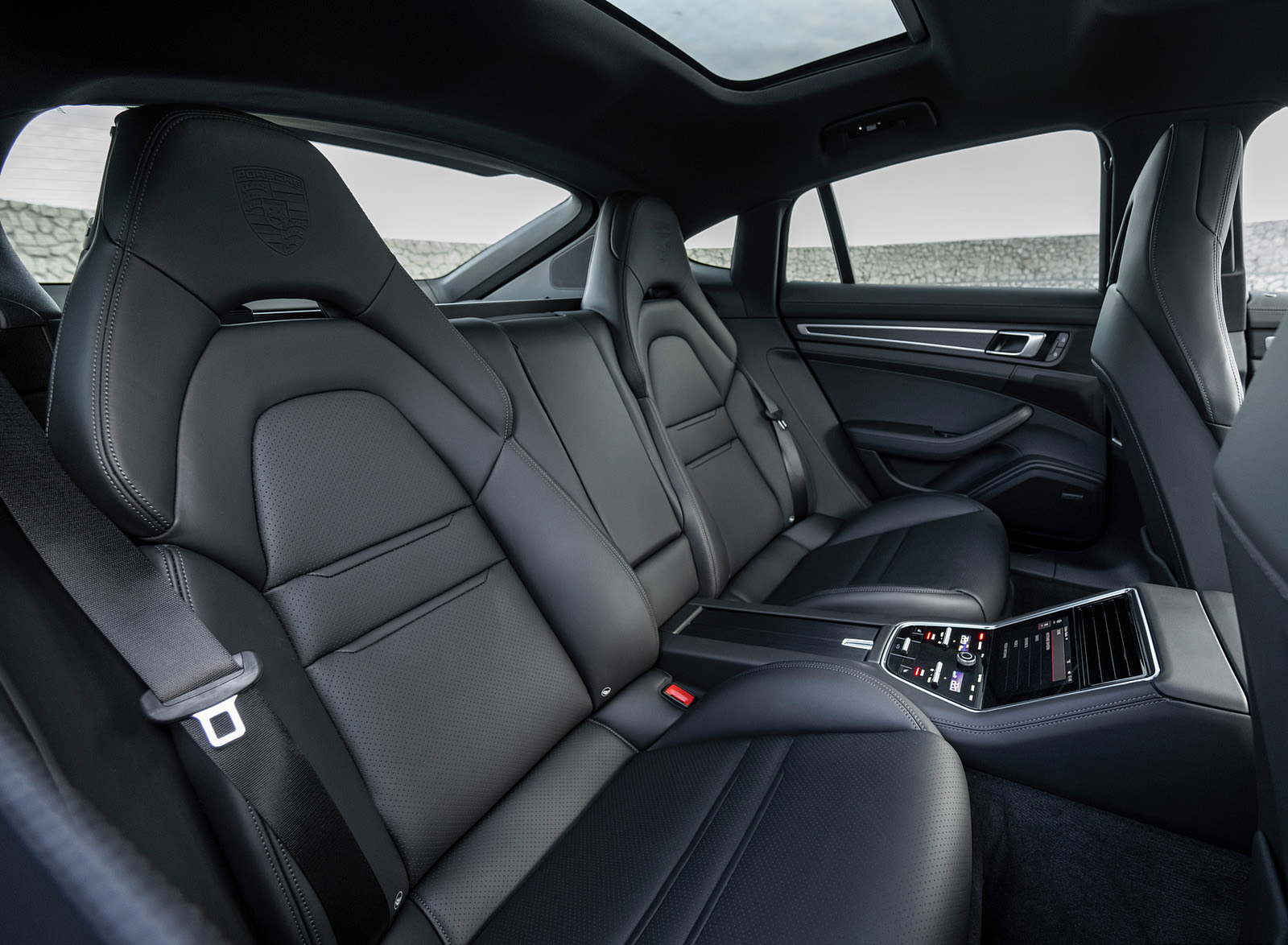 2022 Porsche Panamera 4 E-Hybrid Platinum Edition (Color: Jet Black Metallic) Interior Rear Seats Wallpaper