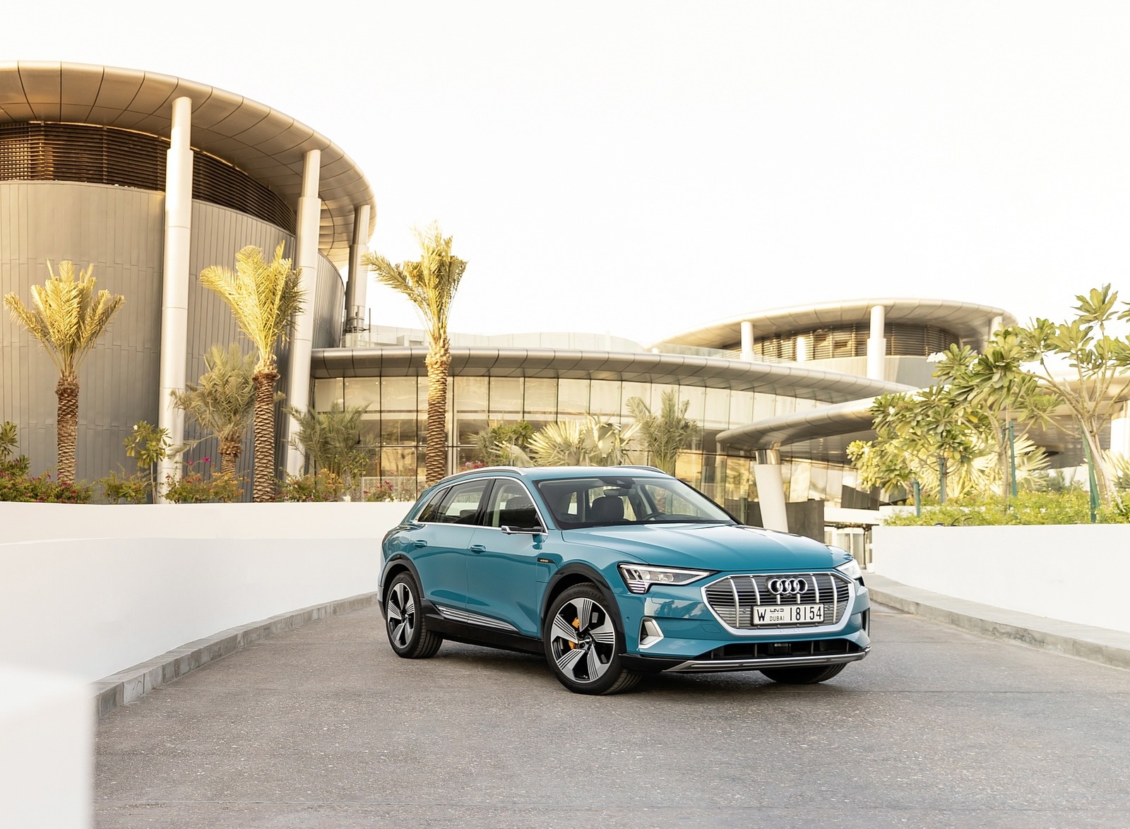 2019 Audi e-tron (Color: Antigua Blue) Front Three-Quarter Wallpaper