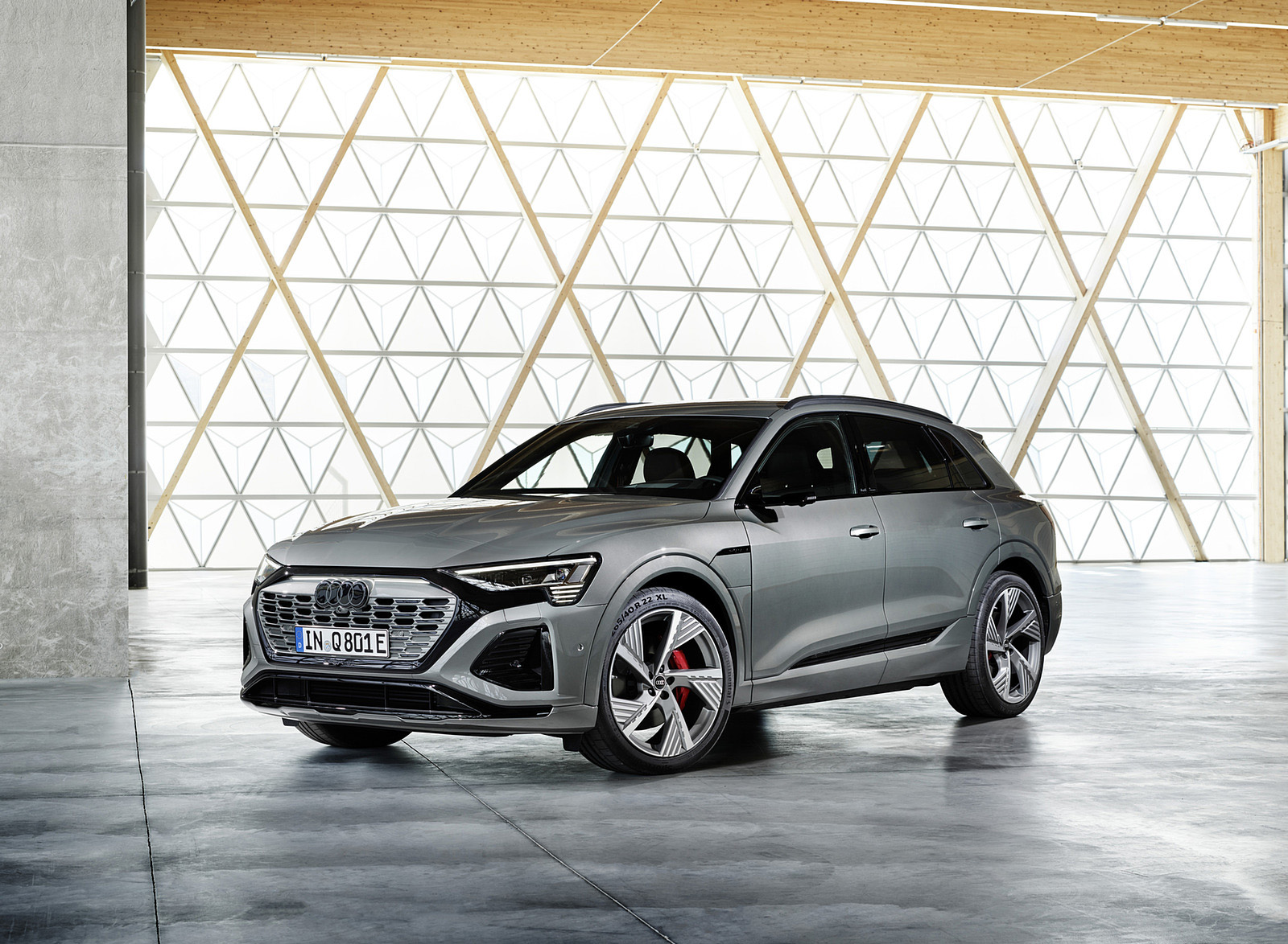 2024 Audi Q8 e-tron quattro (Color: Chronos Gray metallic) Front Three-Quarter Wallpaper
