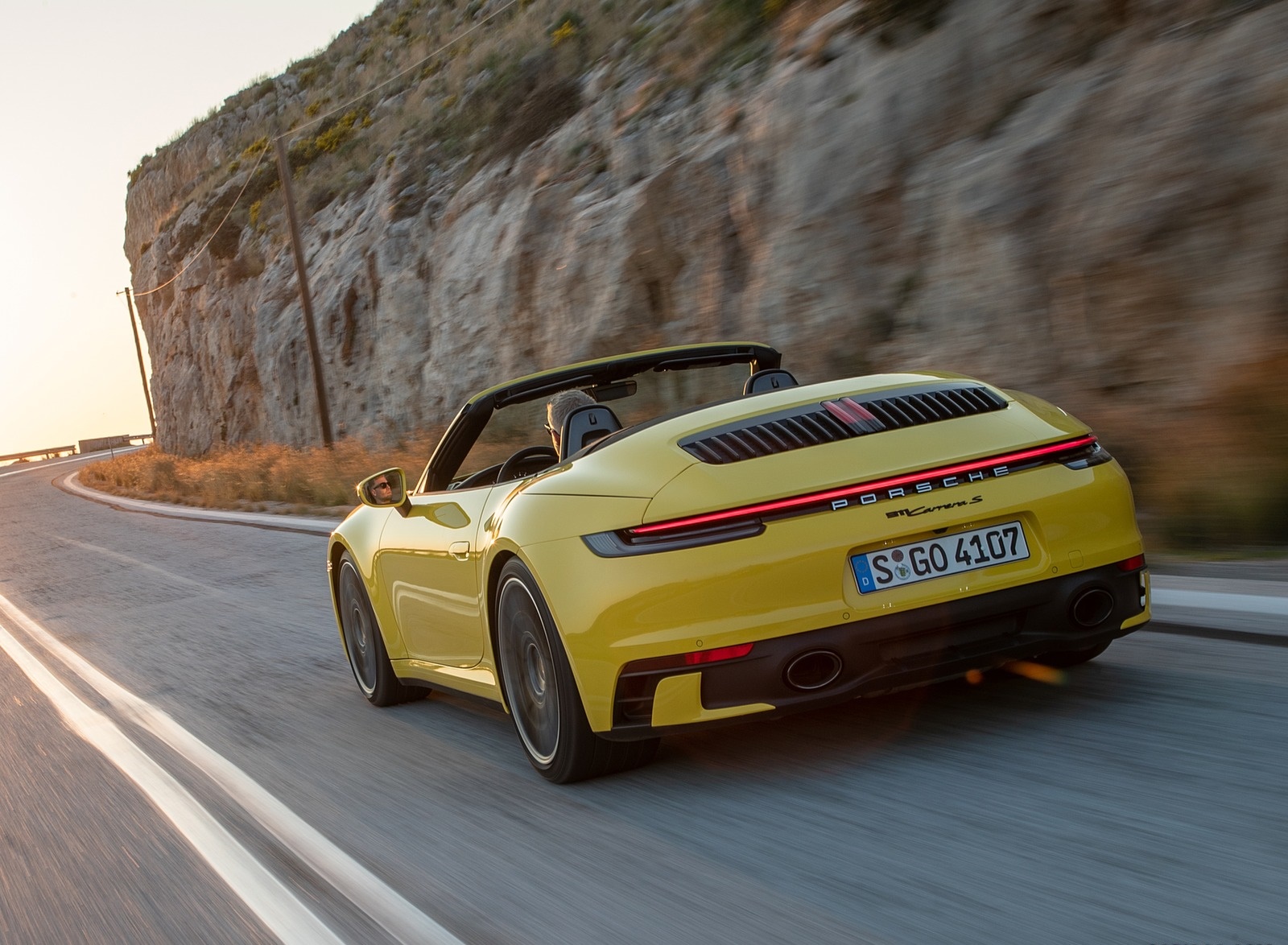 2020 Porsche 911 Carrera S Cabriolet (Color: Racing Yellow) Rear Three-Quarter Wallpaper