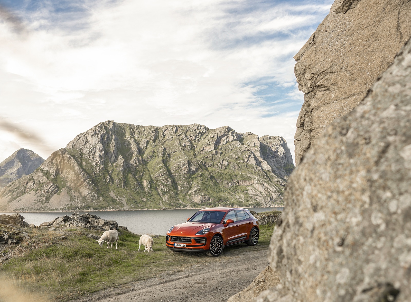 2022 Porsche Macan S (Color: Papaya Metallic) Front Three-Quarter Wallpaper