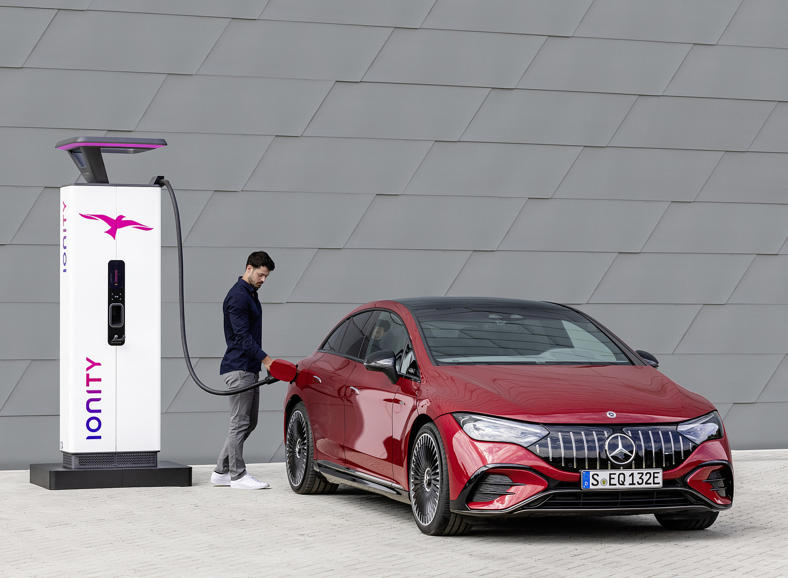 2023 Mercedes-AMG EQE 43 4MATIC (Color: MANUFAKTUR hyacinth red) Charging Wallpaper