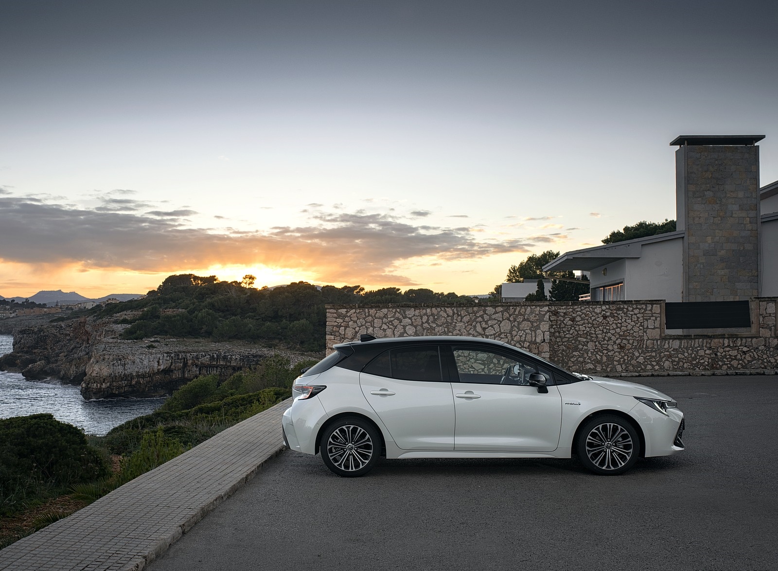 2019 Toyota Corolla Hatchback Hybrid 1.8L White Bitone (EU-Spec) Side HD Wallpaper