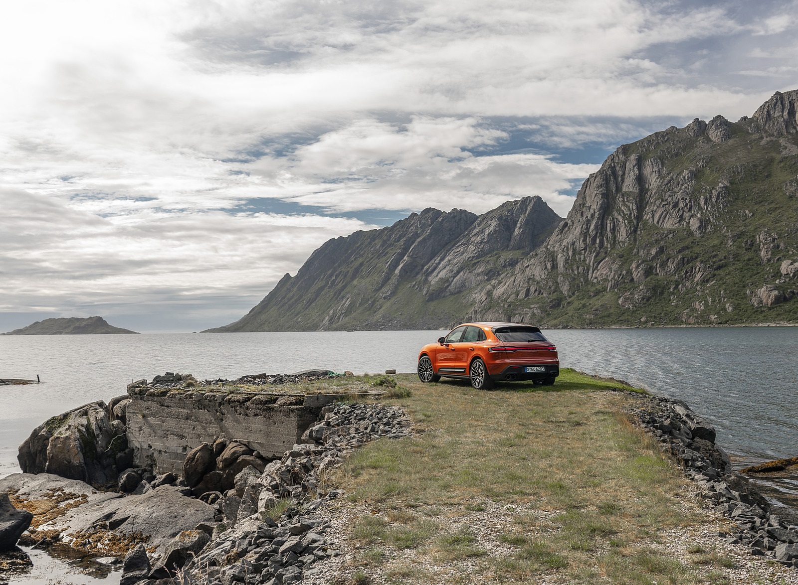 2022 Porsche Macan S (Color: Papaya Metallic) Rear Three-Quarter Wallpaper
