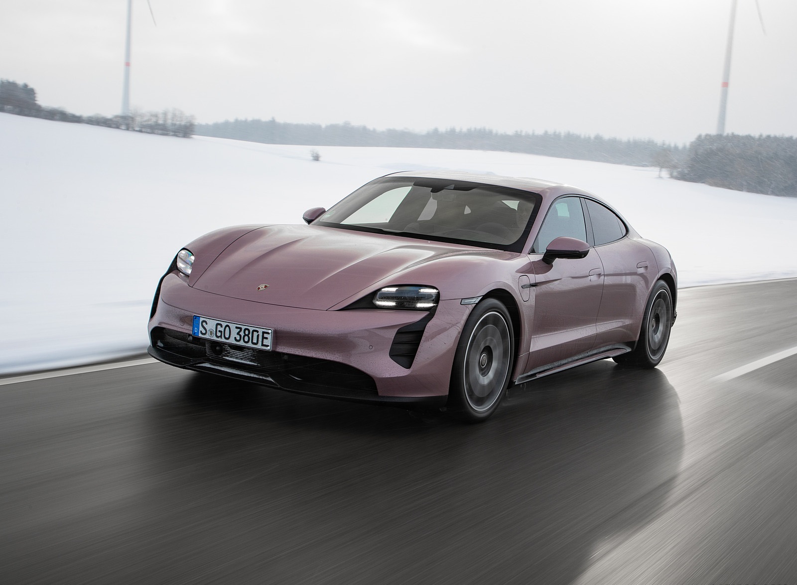 2021 Porsche Taycan (Color: Frozen Berry Metallic) Front Three-Quarter Wallpaper