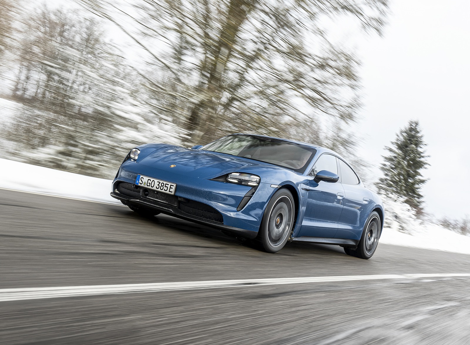 2021 Porsche Taycan (Color: Neptune Blue) Front Three-Quarter HD Wallpaper