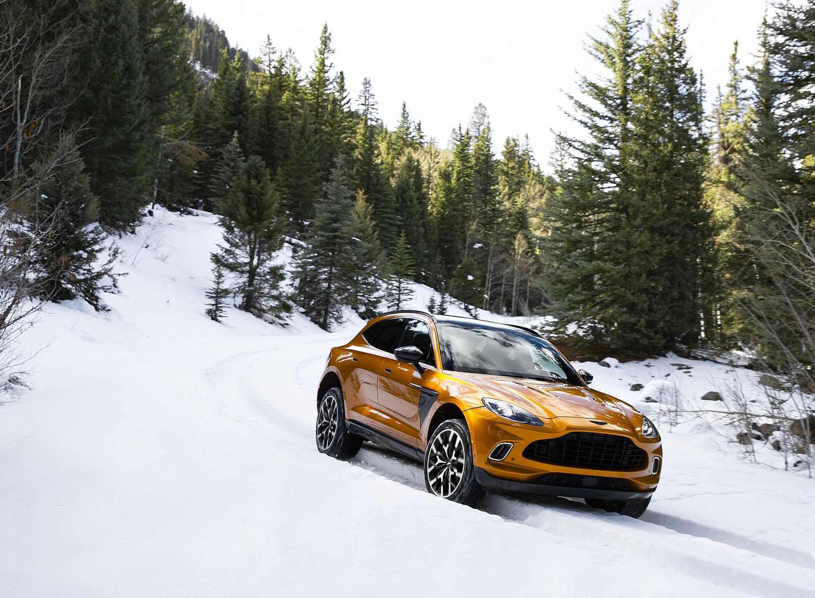 2021 Aston Martin DBX (Golden Saffron; US-Spec) Front Three-Quarter HD Wallpaper