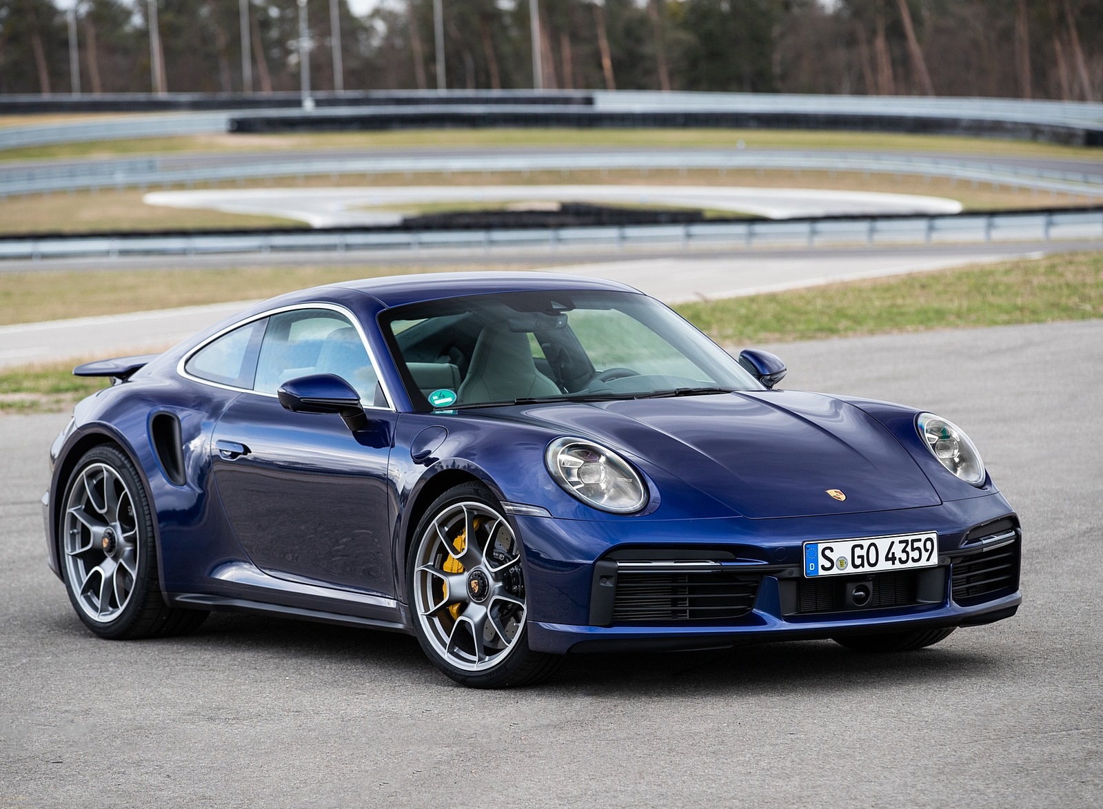 2021 Porsche 911 Turbo S Coupe (Color: Gentian Blue Metallic) Front Three-Quarter Wallpaper