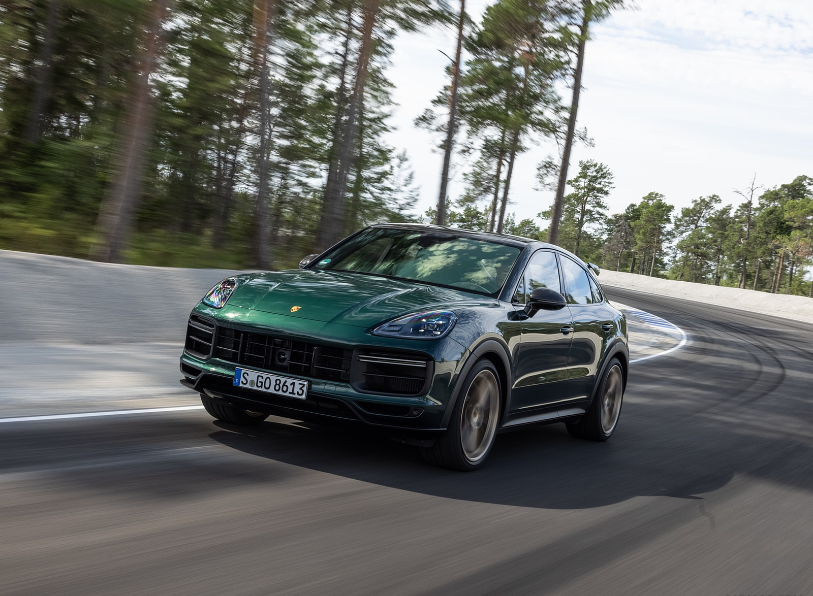 2022 Porsche Cayenne Turbo GT (Color: Porsche Racing Green Metallic) Front Three-Quarter HD Wallpaper