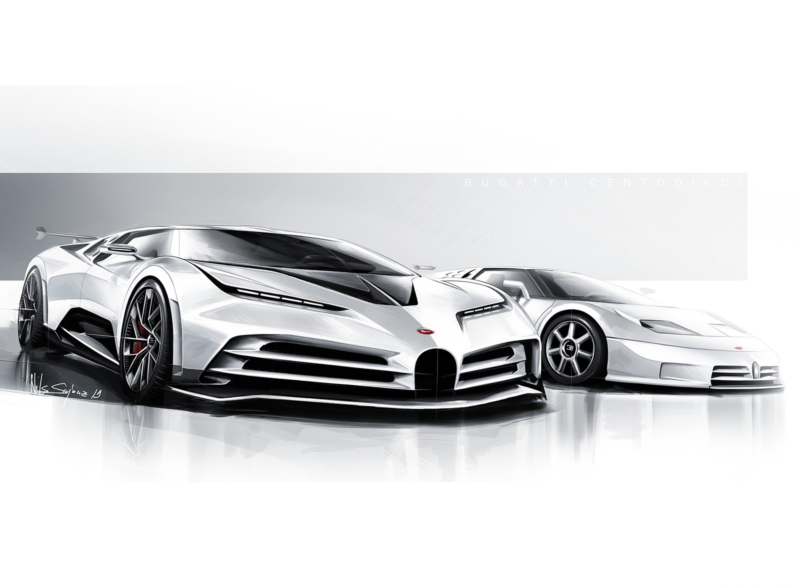 2020 Bugatti Centodieci Design Sketch HD Wallpaper